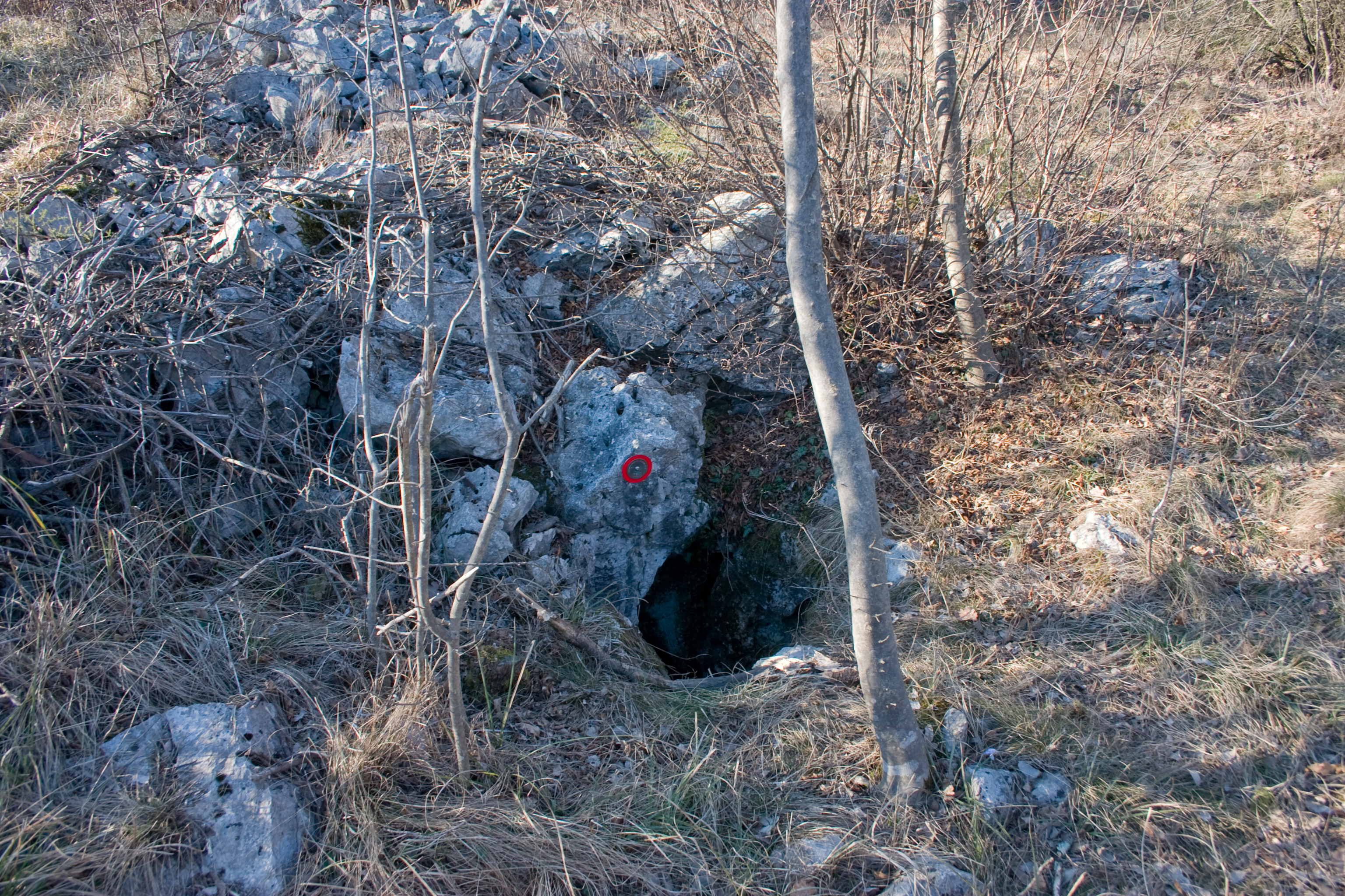 Presenza targhetta: Si Area geografica: Carso Triestino Comune: Duino Aurisina / Devin Nabrežina Area provinciale: Trieste Metodo rilevamento: STRUMENTALE -> GPS Lat. WGS84: 45,770915 Lon. WGS84: 13,68154 Est RDN2008/UTM 33N: 397488.321 Nord RDN2008/UTM 33N: 5069440.323 Quota ingresso (s.l.m.): 234 m