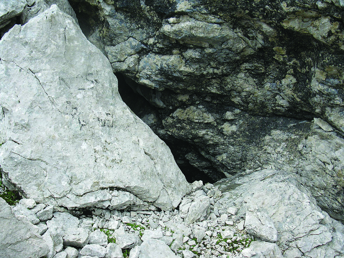 La cavità si apre una ventina di metri sopra il sentiero che da Sella Canin conduce a Sella Grubia.