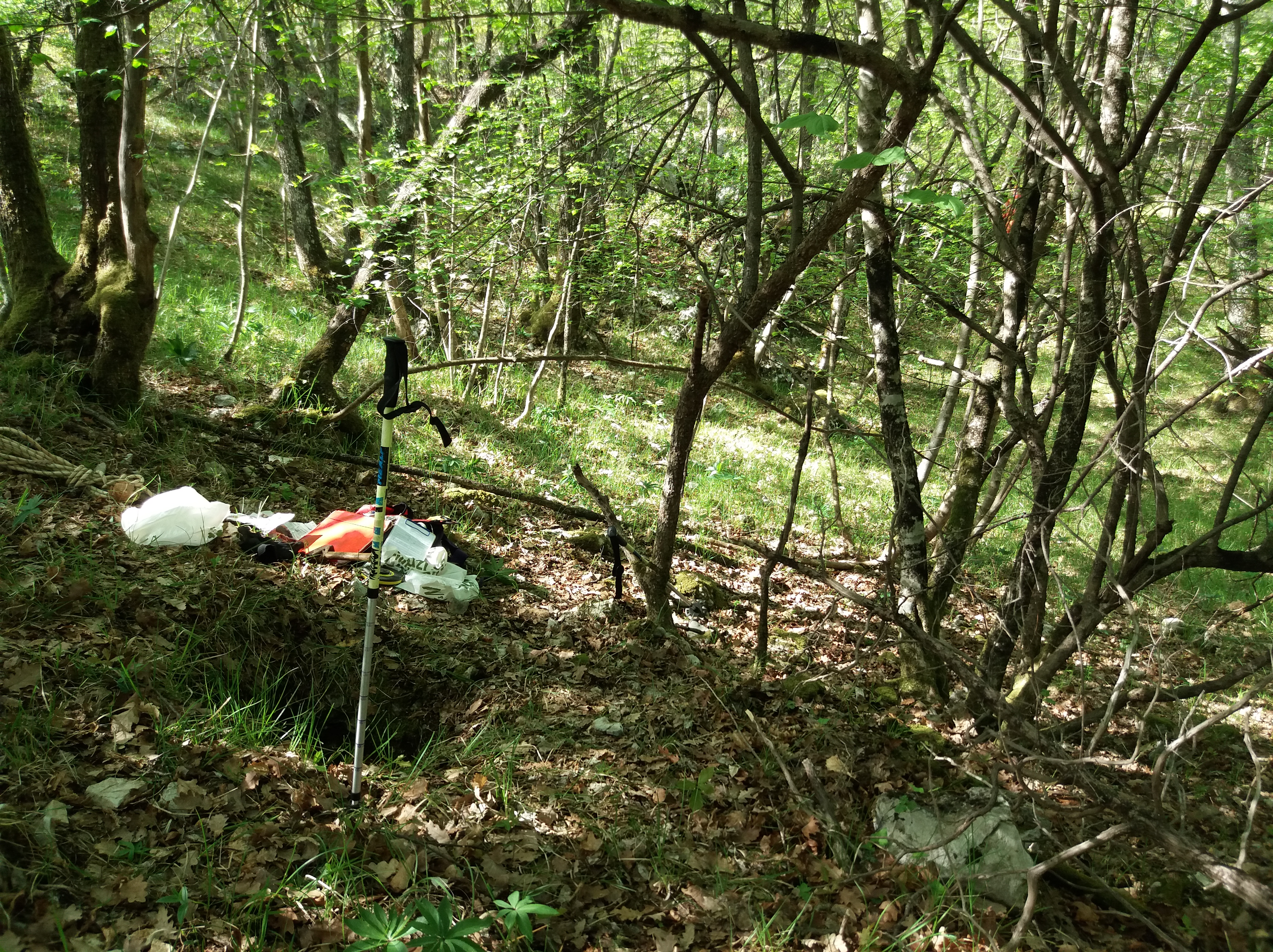 La cavità s'apre a poco più di un centinaio di metri in direzione SW dal Baratro presso Monrupino (1544\4444VG).