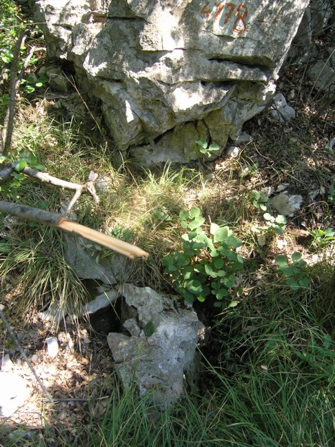 Si percorre la strada Gabrovizza-Comeno e, superata la ferrovia, si prosegue ancora 1300m fino ad incrociare la prima linea di alta tensione. Da qui si abbandona la strada e si segue la linea elettrica fino a giungere al terzo pilone. Si piega di 90°, a destra, e si continua per circa 95m.