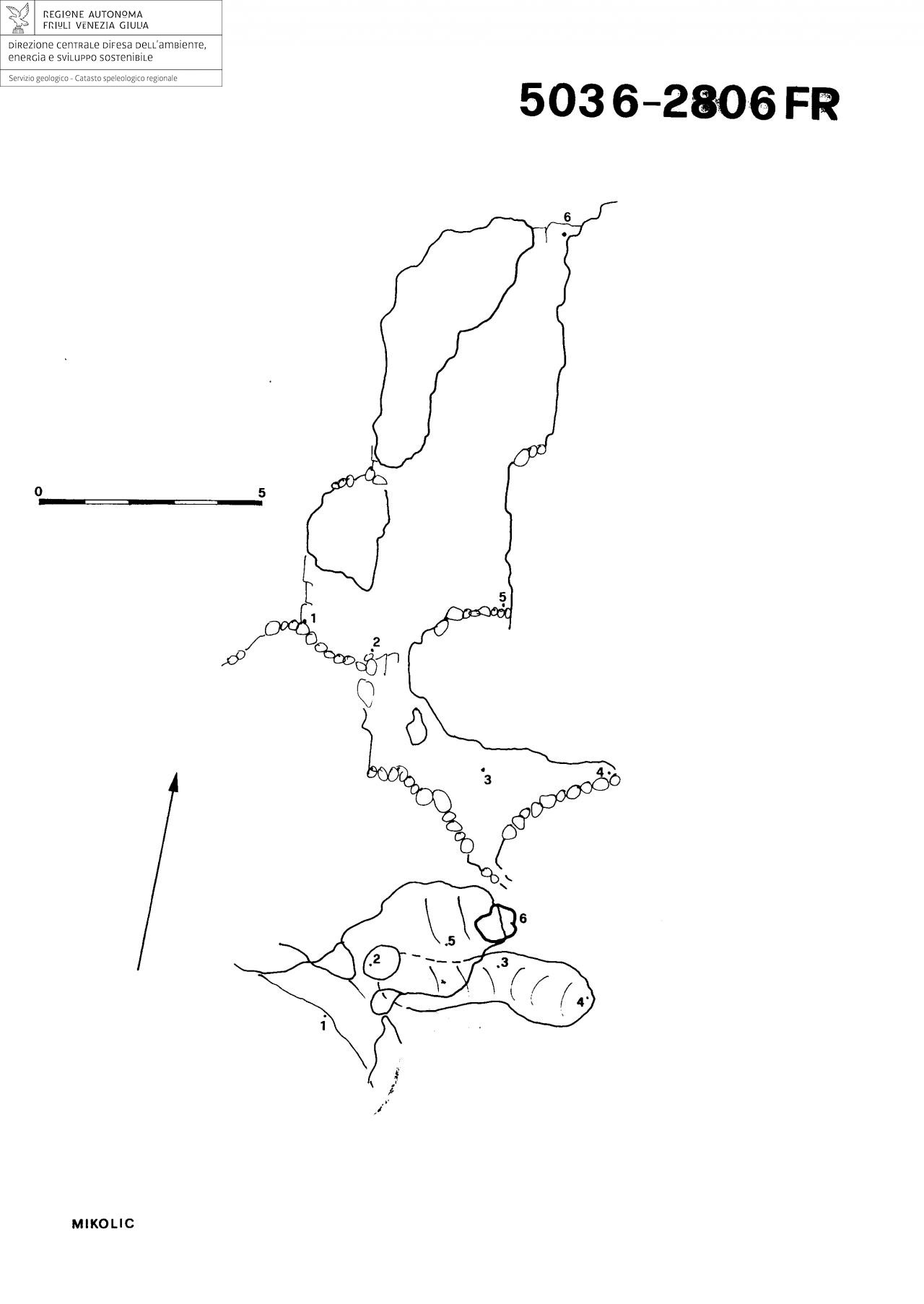 L'ingresso, ampio 0,6 X 0,8m, dà accesso ad un P8,5 diviso in due salti da un ripiano detritico. Dal fondo si fuoriesce all'aperto, alla base delle paretine, tramite un portale largo 2m ed alto 3m, oppure si può scendere un salto di 2,5m che immette lateralmente in un'ultima cavernetta lunga 5,3m.