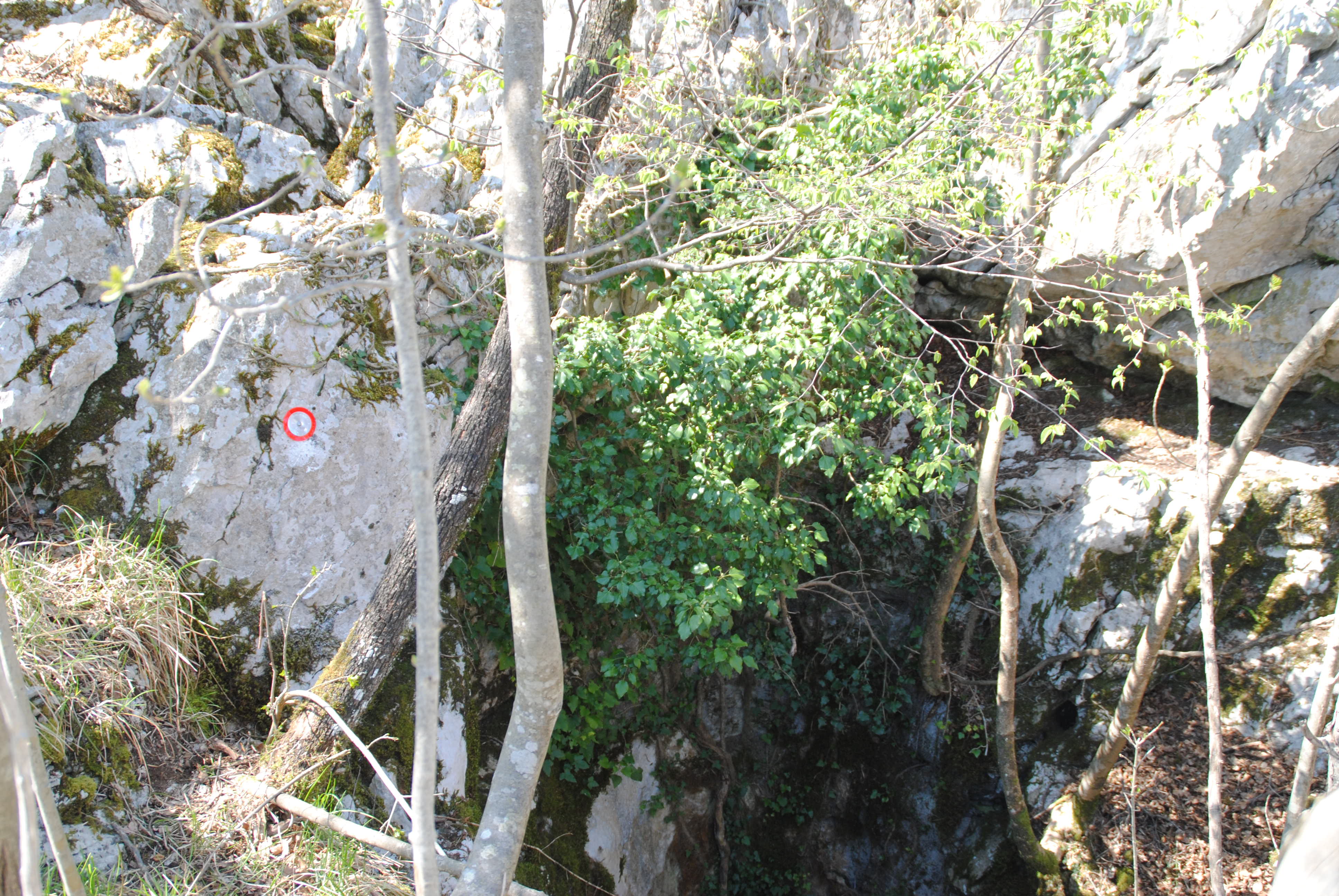 Piccolo baratro discendibile, con un po' di attenzione, senza scale o corda lungo la parete NE. Sul fondo sono state individuate due possibili prosecuzioni: verso SW (punto A del rilievo) è sembrato che una pietra cadesse per parecchi metri (ma una volta soltanto, per cui il dato non è sicuro); verso NNE (punto B del rilievo), uno stretto passaggio, per ora non transitabile, è oggetto di scavo e conduce ad un vano qualche metro più sotto. La scarsa circolazione di aria ha consigliato, per ora, di rimandare gli scavi.