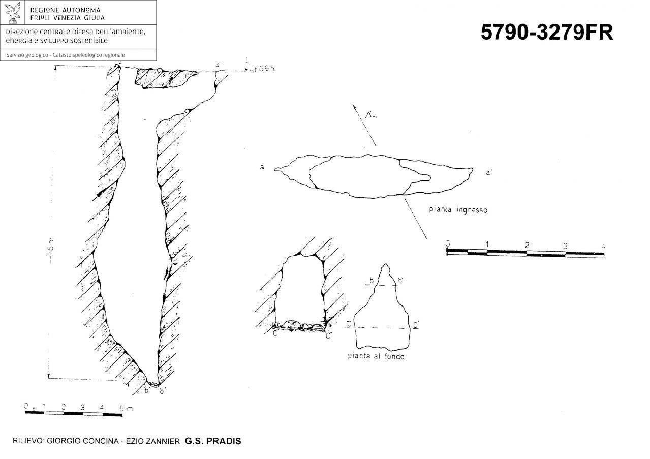 La cavità è costituita da un unico pozzo, con un masso che quasi chiude l'ingresso e con il fondo di ciottoli e detriti.