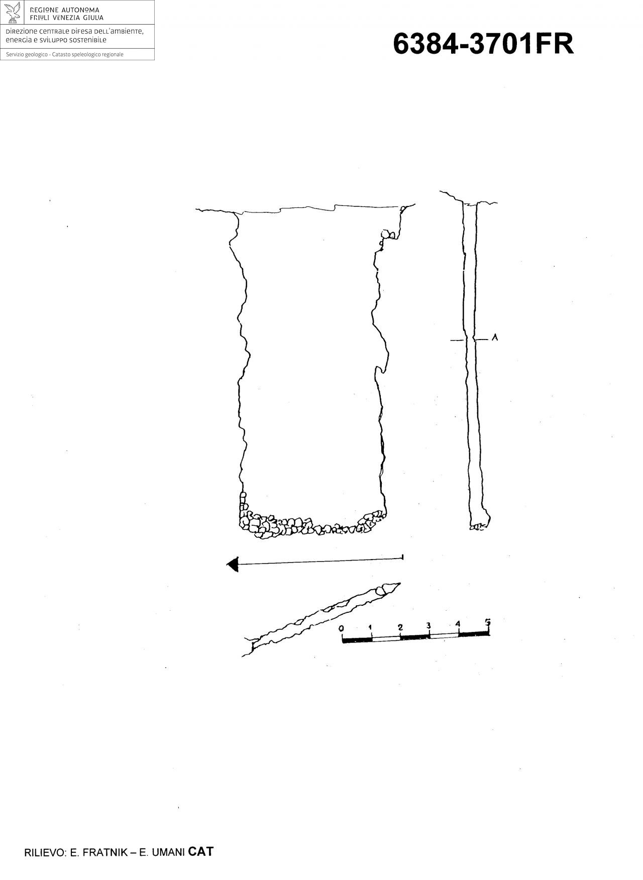 Pozzo verticale, molto corroso e stretto, dalla larghezza massima di 0,45m. A metà pozzo circa, una lama di roccia intralcia la discesa che prosegue con qualche difficoltà.