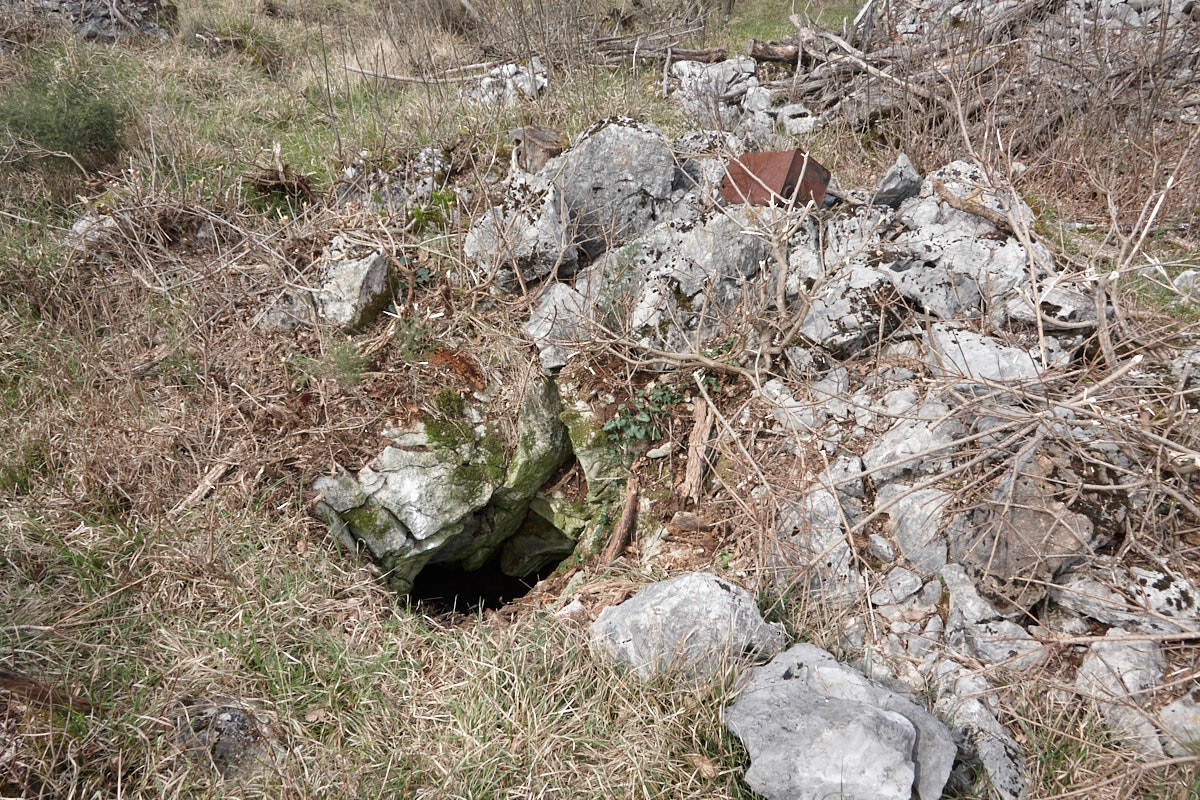 Presenza targhetta: Si Area geografica: Carso Triestino Comune: Duino Aurisina / Devin Nabrežina Area provinciale: Trieste Metodo rilevamento: STRUMENTALE -> GPS Lat. WGS84: 45,745189 Lon. WGS84: 13,68117035 Est RDN2008/UTM 33N: 397412.44 Nord RDN2008/UTM 33N: 5066582.602 Quota ingresso (s.l.m.): 161 m