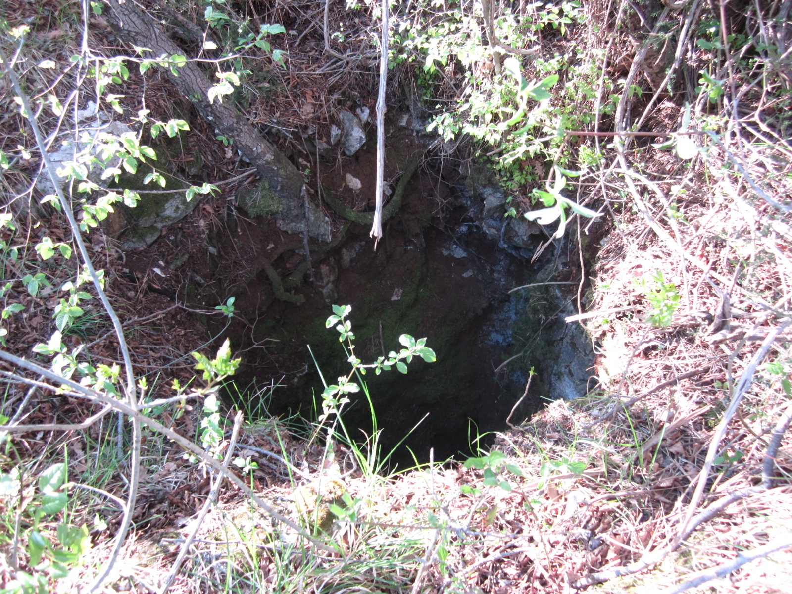 L'ingresso della grotta venne allargato in quanto inizialmente misurava 15cm x 15cm. Il pozzo d'accesso è tagliato a circa metà altezza da una grande lama rocciosa; sulla parete Ovest, a 1,5m dal fondo del pozzo si apre un cunicolo che porta in una saletta, dalla quale scende un ultimo breve pozzo.