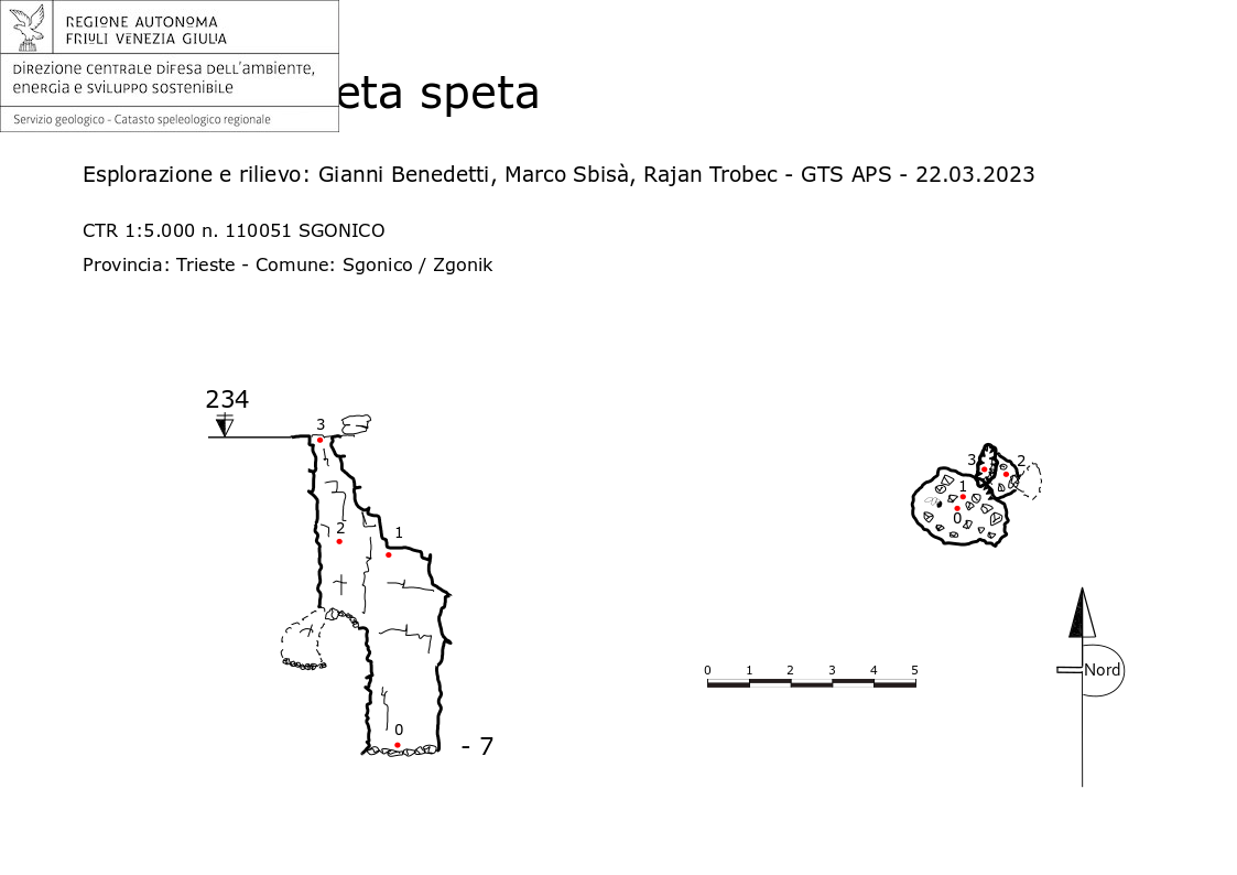 Breve pozzetto interrotto a circa 4 metri di profondità da un ripiano; in corrispondenza di questo verso est si apre un breve vano non percorso.