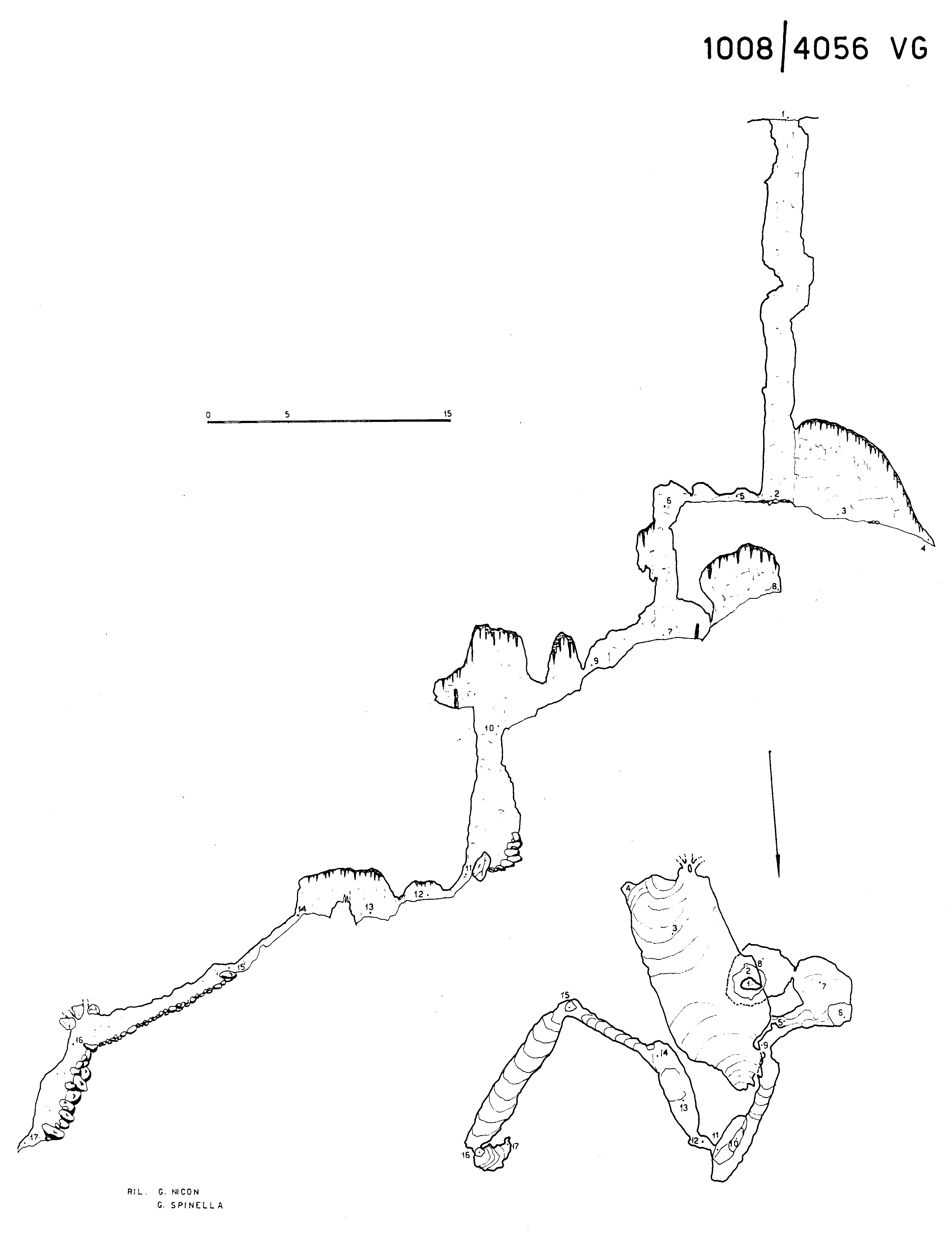 La strettoia è lunga 3m e termina in un'angusta cavernetta dalla quale si giunge all'ingresso di un pozzo di 9m, alla base del quale si estendono due belle cavernette fortemente concrezionate; una successiva strettoia, anch'essa allargata artificialmente, conduce in una caverna dalla quale uno stretto cunicolo nell'argilla, aperto tramite uno scavo, porta ad una galleria discendente, al termine della quale è stato aperto, in mezzo a massi di crollo, un pozzo di 6m.