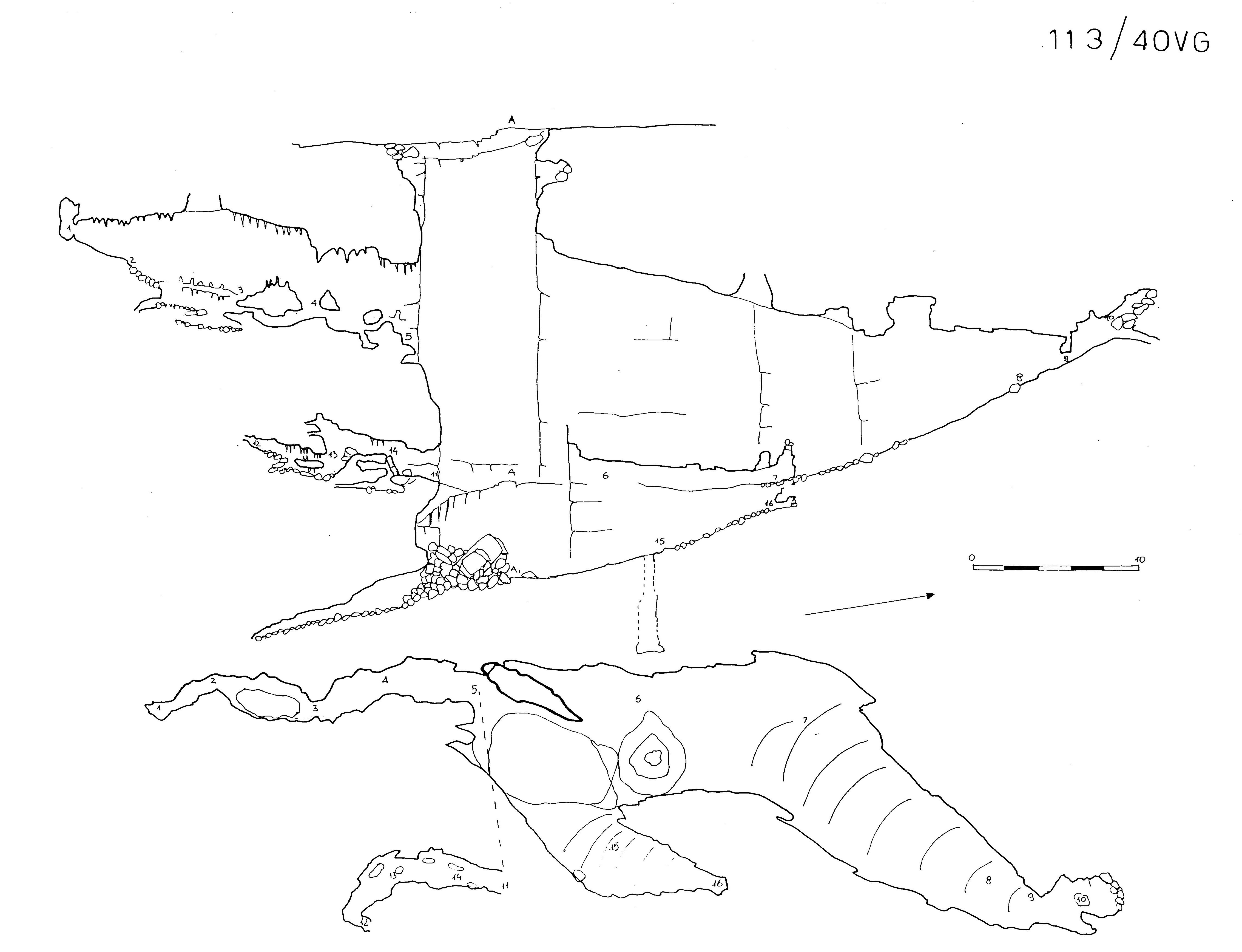 la grotta è stata esplorata sia dal CTT che dalla SAG, ma il rilievo di quest'ultima si è dimostrato carente (mancano le gallerie meridionali e il pozzetto interno di 6m), per cui si è ritenuto di aggiornarlo.