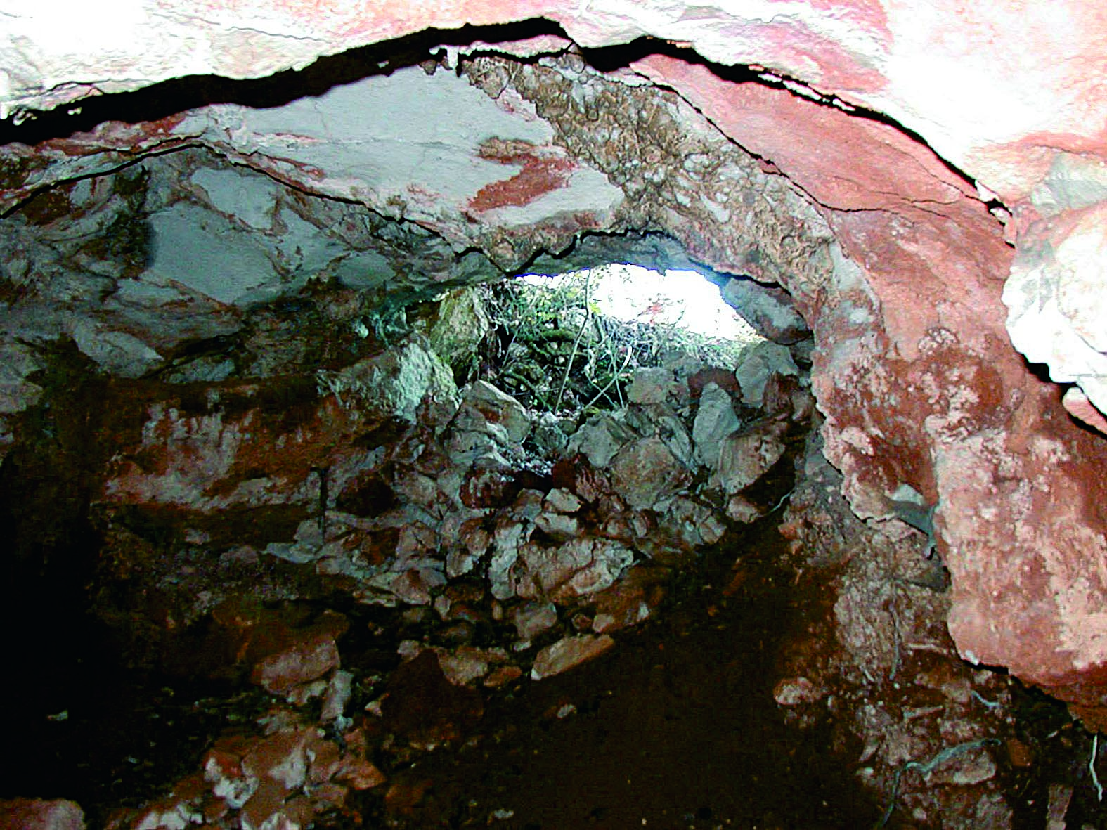 Durante i lavori di adattamento gli austriaci gettarono il materiale di riporto in parte all'esterno della grotta ed in parte all'interno della stessa, occludendo in tal modo il deposito antropozoico presente nella caverna, la presenza del quale è stata accertata, presso l'ingresso, con un piccolo scavo di assaggio che ha rivelato la presenza di alcuni cocci preistorici a 40cm di profondità. Prima degli importanti lavori di adattamento eseguiti dagli austriaci, la caverna doveva essere estremamente interessante per le ricerche preistoriche, sia per la sua posizione riparata che per la perfetta abitabilità del vestibolo, asciutto e ben illuminato.