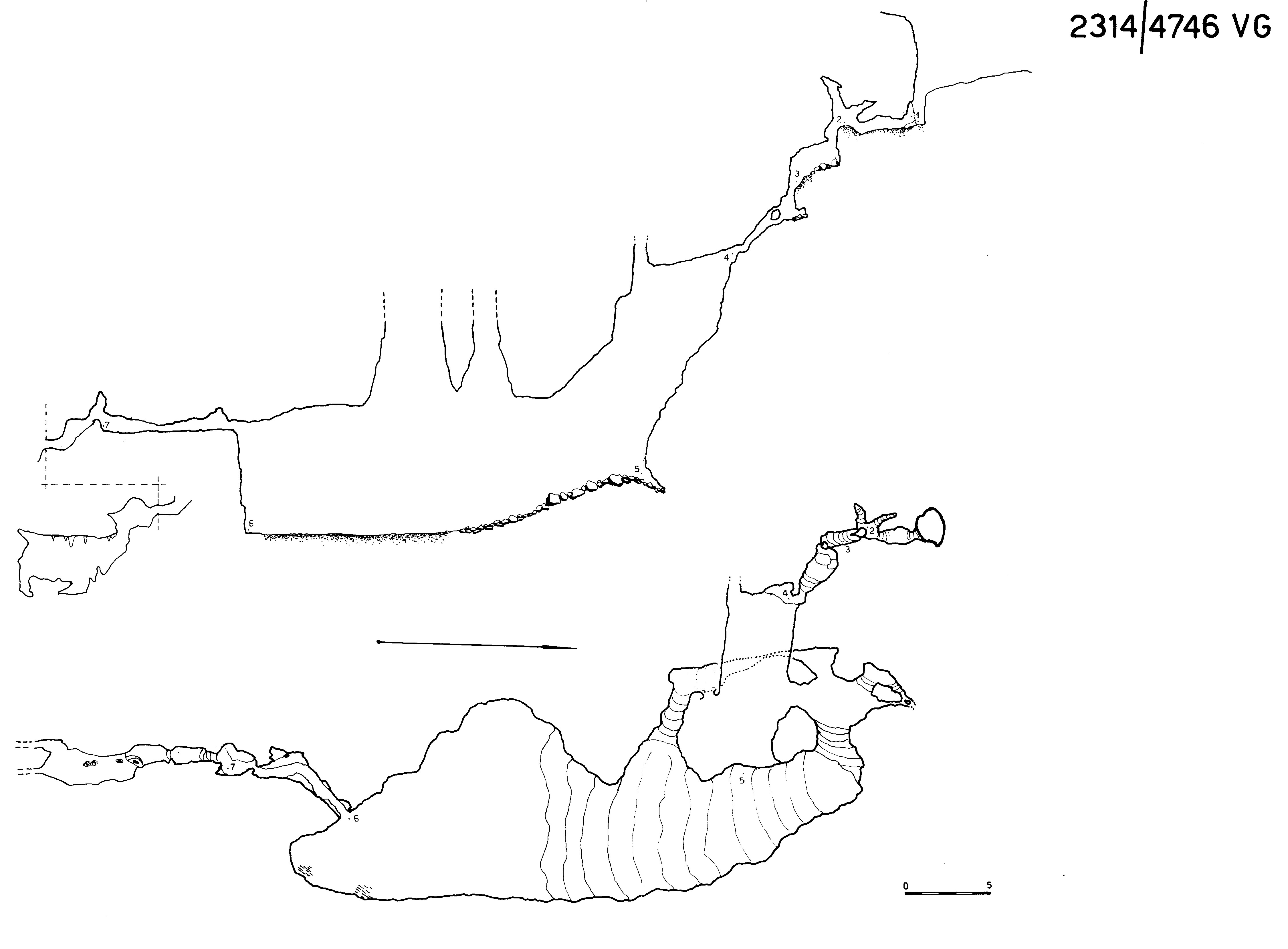 In questo cunicolo, nel 1992 è stato effettuato uno scavo in roccia viva (punto 7 del rilievo), il quale ha permesso di giungere sull'imbocco di uno stretto saltino di 1,5m, al quale segue uno scivolo che porta ad una cavernetta di 5m x 2m, ben concrezionata, con la quale la cavità termina. L'origine della debole corrente d'aria uscente, percepibile all'imbocco del saltino, non è stata appurata.