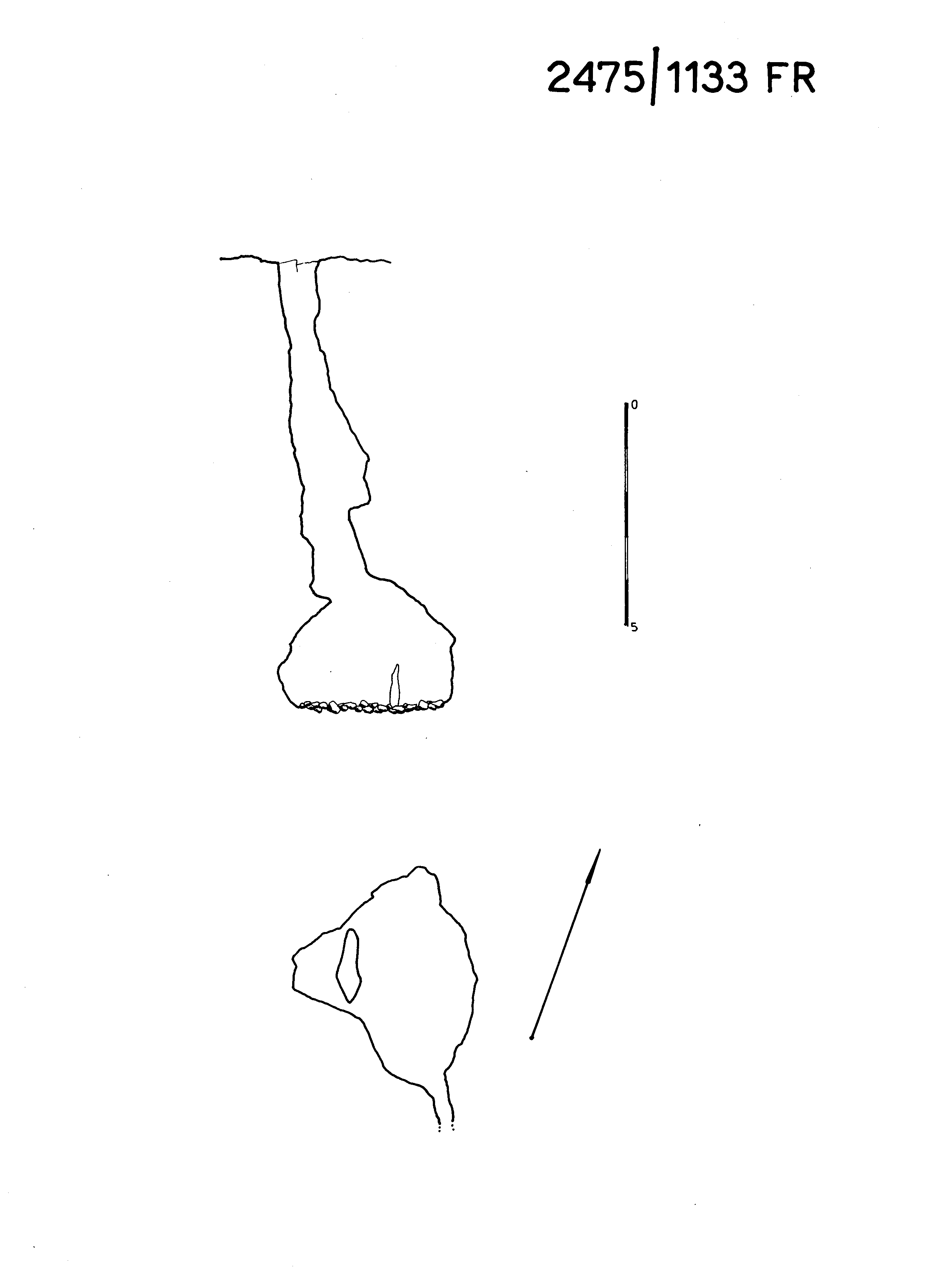 Uno stretto budello verticale porta ad una cavernetta dalla pianta triangolare, alta tre metri e larga cinque. Da qui con una facile arrampicata si raggiunge uno stretto meandrino al limite della praticabilità, che si collega con la sottostante 2473/1131FR.