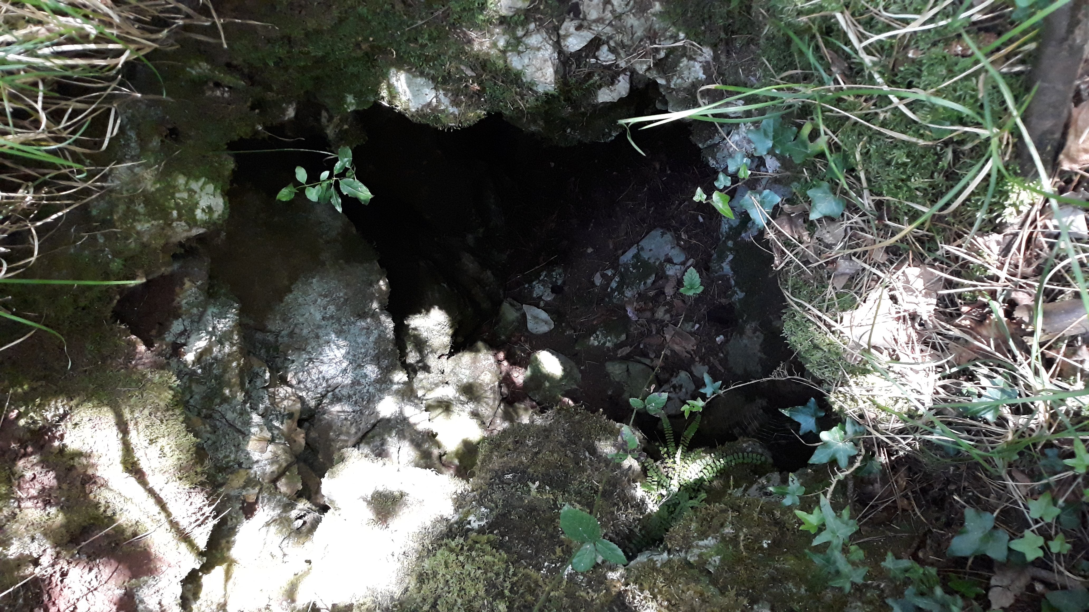 Stretto pozzo impostato su una frattura orientata secondo NW-SE. Il primo tratto -un doppio gomito- è reso malagevole da un ponte di roccia e da una strettoia; nella parte terminale numerosi massi incastrati sulla parete rendono la discesa pericolosa.