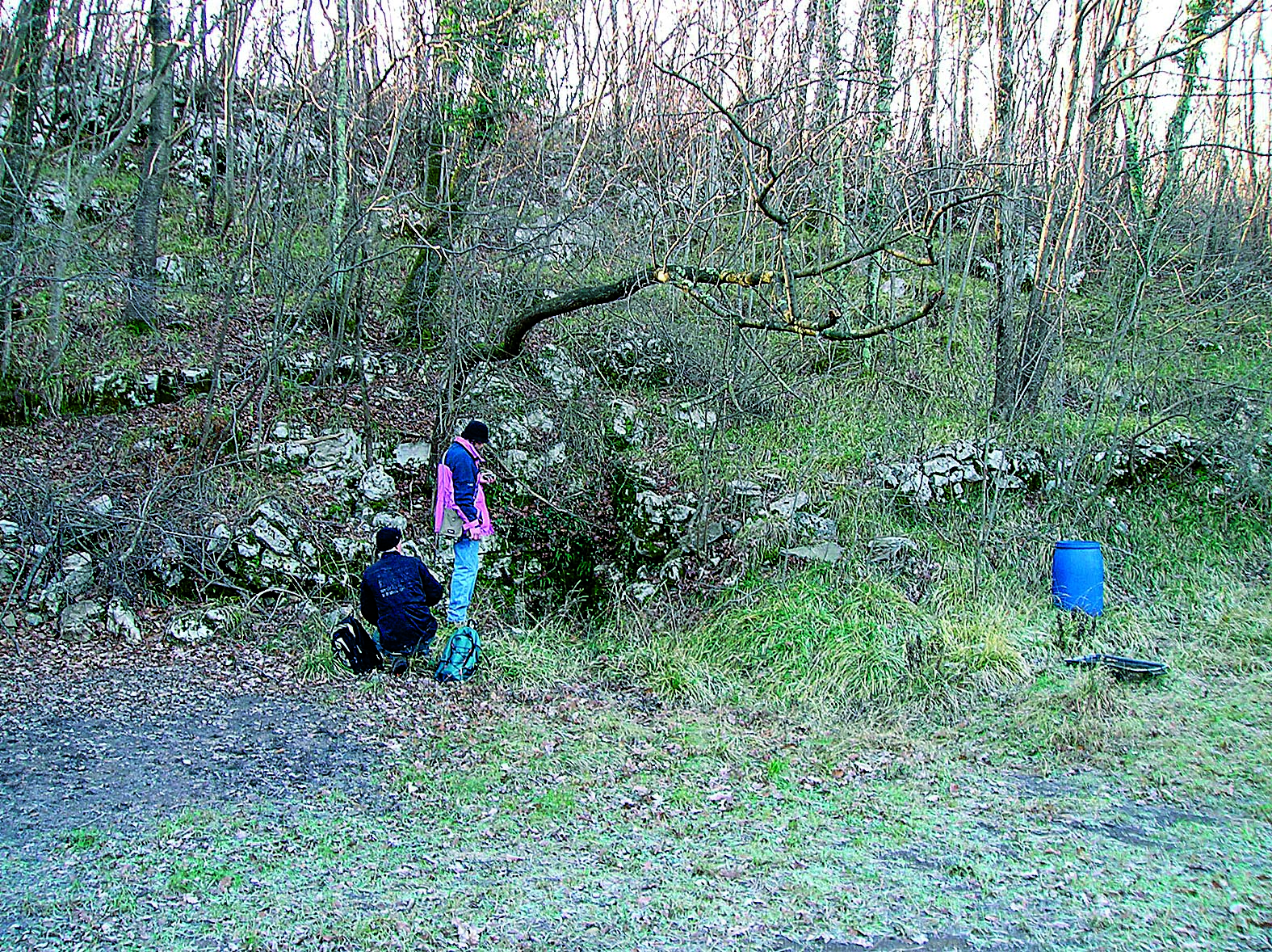 NOTA: tra i numerosi esempi di cavità sfruttate durante la prima guerra mondiale, questa rappresenta un caso unico nel suo genere; a differenza d'altre grotte dove vi era già una falda idrica o nelle quali fu captato lo stillicidio, qui si convogliò all'interno l'acqua piovana che cade nella vasta dolina allungata nella quale si apre la caverna. Per favorire l'afflusso fu scavato un canale trasversale -tuttora ben visibile- che va a finire nell'imbocco della cavità. Probabilmente furono anche otturate le fessure che potevano dar luogo a perdite, creando così un ambiente impermeabile della capacità di vari m3.