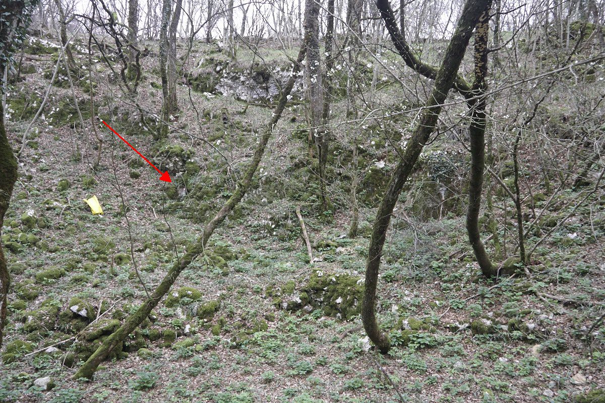 La cavità si apre sul fondo di una dolina.