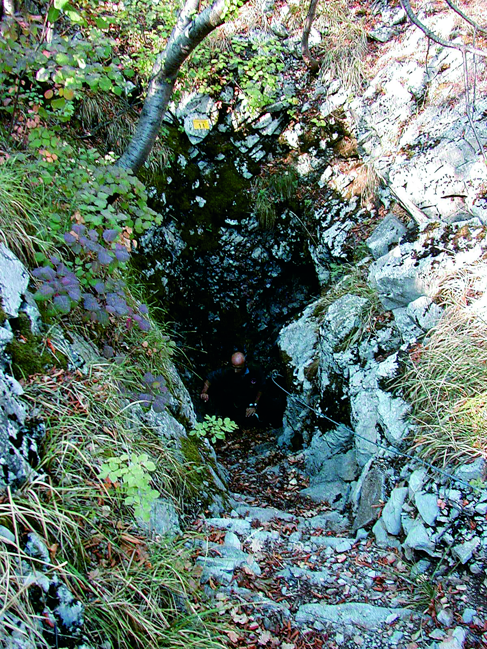 Note per Stato ingresso: Pozzo che si apre in fondo ad una trincea, con i resti di una scalinata (attrezzato con cavi d'acciaio)