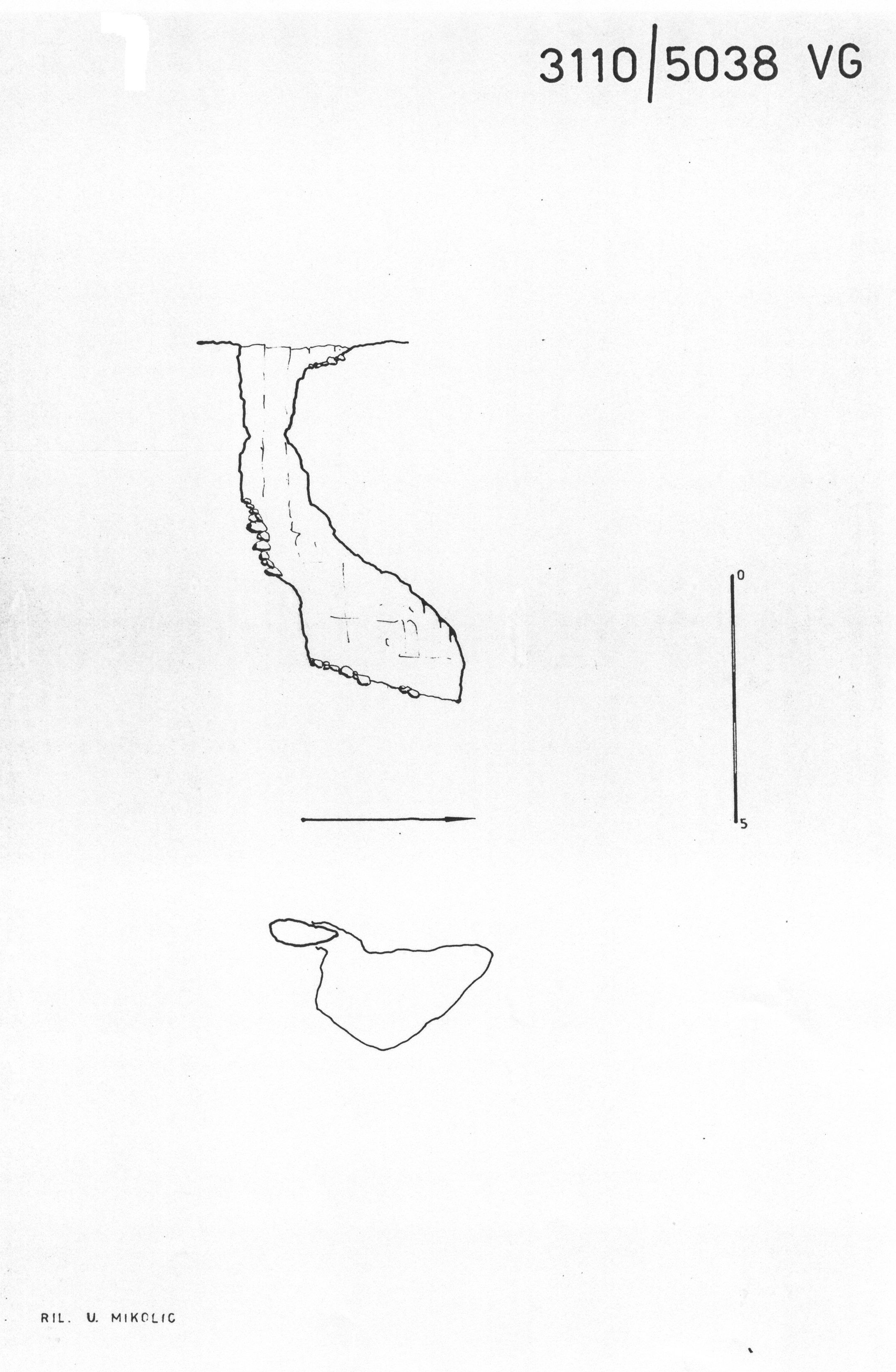 Pozzo di modeste dimensioni, interrotto a metà da una frana, che sbocca in una cavernetta.