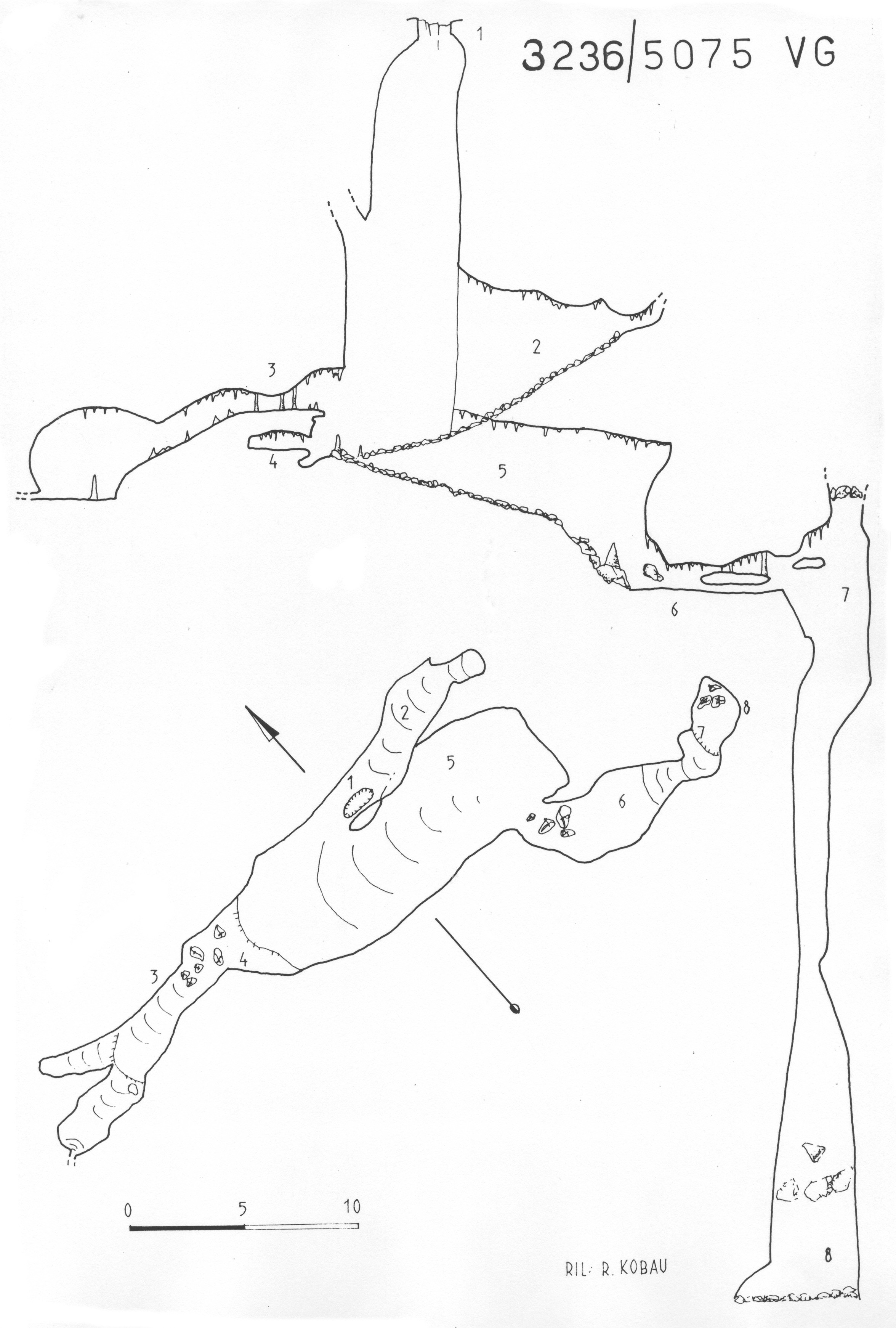 NOTA: nel primo tratto del ramo discendente, furono trovati alcuni frammenti ossei di corno di bue; all'interno della cavernetta del ramo superiore si raccolse un cranio concrezionato di mustelide (faina o martora).