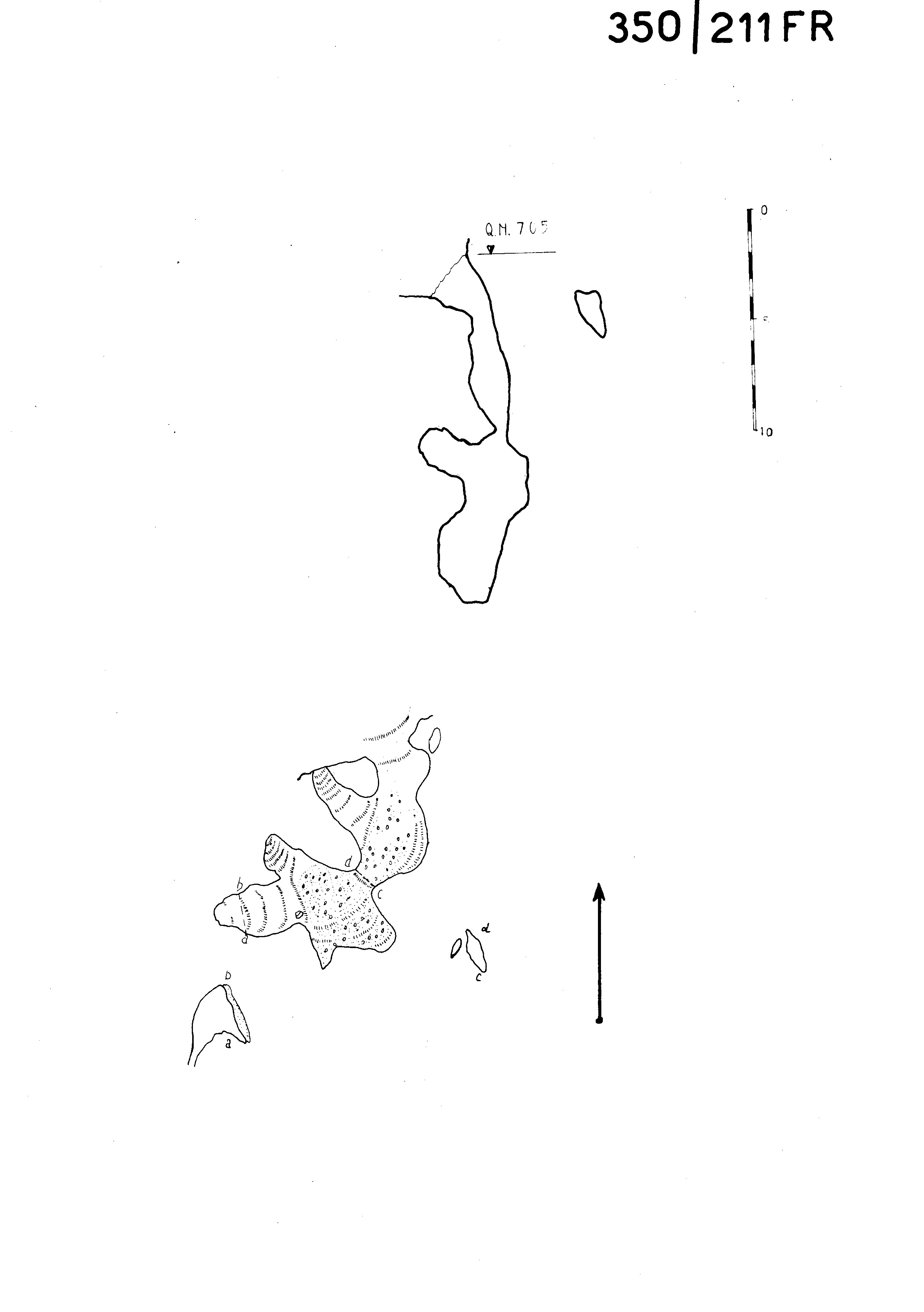 "Si entra nella grotta (punto 0) per un pendio in discesa verso l'interno, attraverso un'apertura grossolanamente triangolare, raggiungendo una prima saletta dal fondo quasi piano e sparso di pietrisco. A destra si apre un basso canale in salita che sbocca all'esterno mediante una fessura (punto 1b). A sinistra dell'ingresso, da un breve canale aperto un po' in alto, sopra il fondo, esce uno stillicidio d'acqua perenne (punto 1c). Quindi, attraverso una stretta fenditura obliqua, e discendendo per un basso gradino roccioso (punto 2), si accede nella stanza interna della grotta, dal fondo piatto, sparso di pietrame e dalla volta irregolare…… A destra è un breve diverticolo in ascesa finchè il pavimento e il soffitto si congiungono (punto 5). La caverna si continua ancora per alcuni metri in un ampio canale in salita(punto 4), con la volta alta sino a 3m e il fondo inclinato verso sud e coperto di terriccio e detrito roccioso."