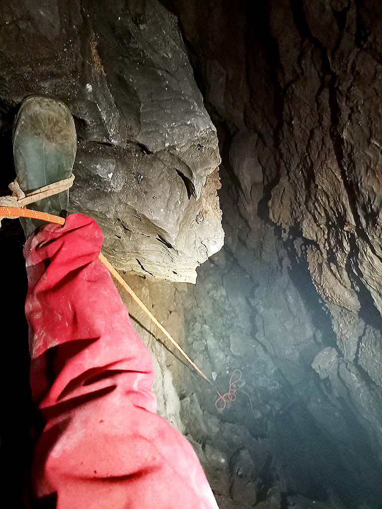 A circa 5m dall'uscita c'è una piccolissima finestra che lascia intravedere un altro ambiente. Da qui esce una discreta corrente d'aria.