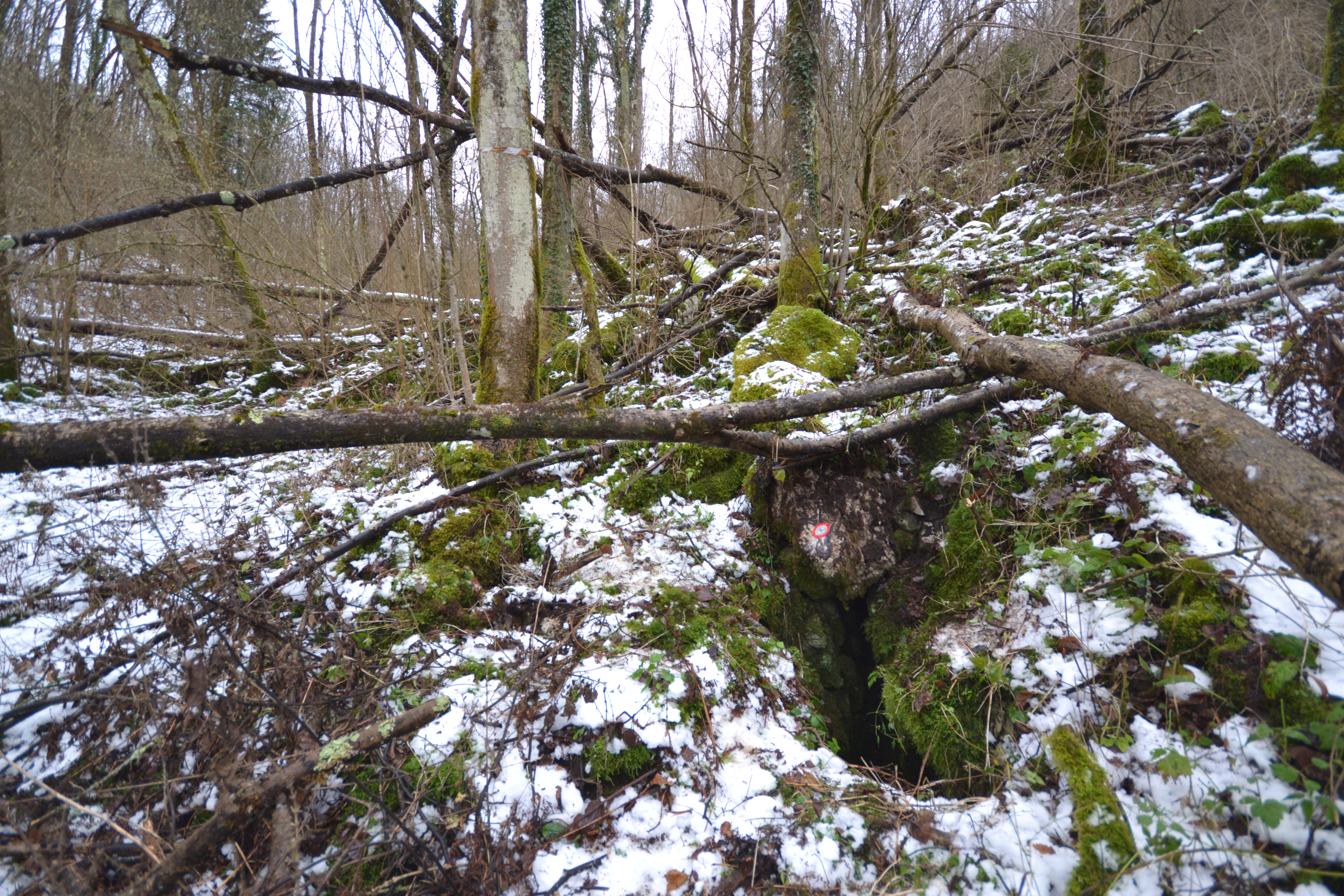 Piccola cavità scavata nel calcare cretacico. Un salto di 3m porta ad una saletta, alta 1,2m oltre la quale s'apre un P7 dalla base costituita da massi di crollo. Qui, oltre ad un passaggio basso, si trova un camino risalito per 9,5m, terminante con una strettoia dalla quale filtra una debole corrente d'aria. La presenza di alcune radici confermano la vicinanza del camino con l'esterno. Dal lato opposto si diparte un breve cunicolo in discesa la cui disostruzione ha portato ad una saletta, sempre in discesa, larga circa 6m ed alta circa 1m. Uno scavo in frana è stato interrotto dalla ristrettezza degli ambienti e dalla presenza di grossi massi.