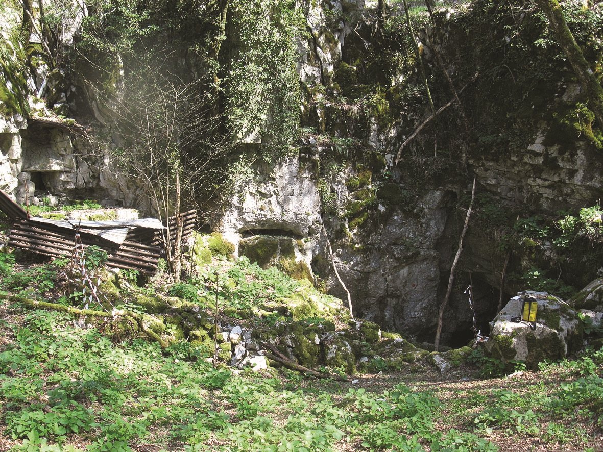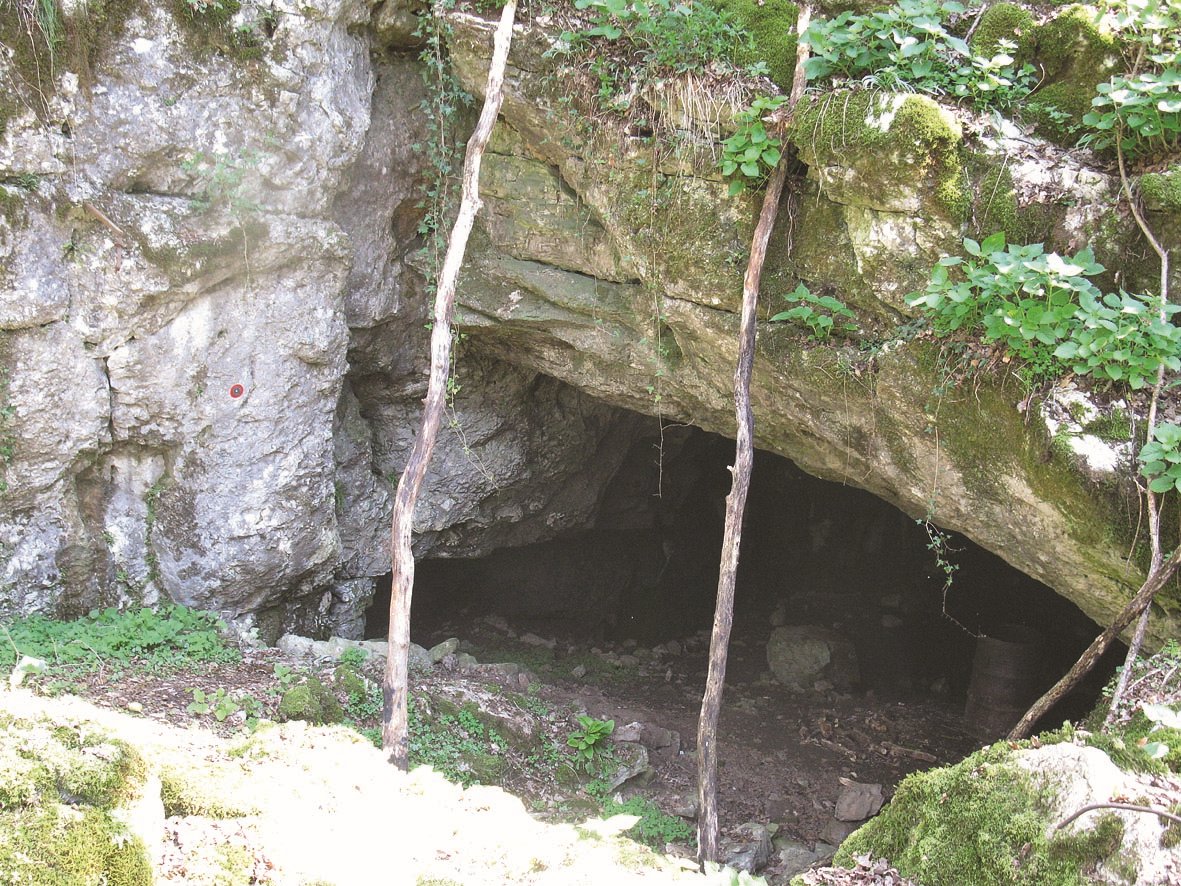 Questa è una delle caverne preistoriche più note, pur essendo di proporzioni modeste e si trova al fondo di una vasta dolina. Il deposito antropozoico è stato scavato in passato da vari ricercatori, tra i quali Moser, Marchesetti, Battaglia e tuttora sono in corso dei lavori ad opera di privati. Il suolo è sconvolto da buche, in parte riempite ed una lunga trincea si estende presso la parete SW; altri assaggi, effettuati nella dolina antistante, non hanno dato alcun risultato.