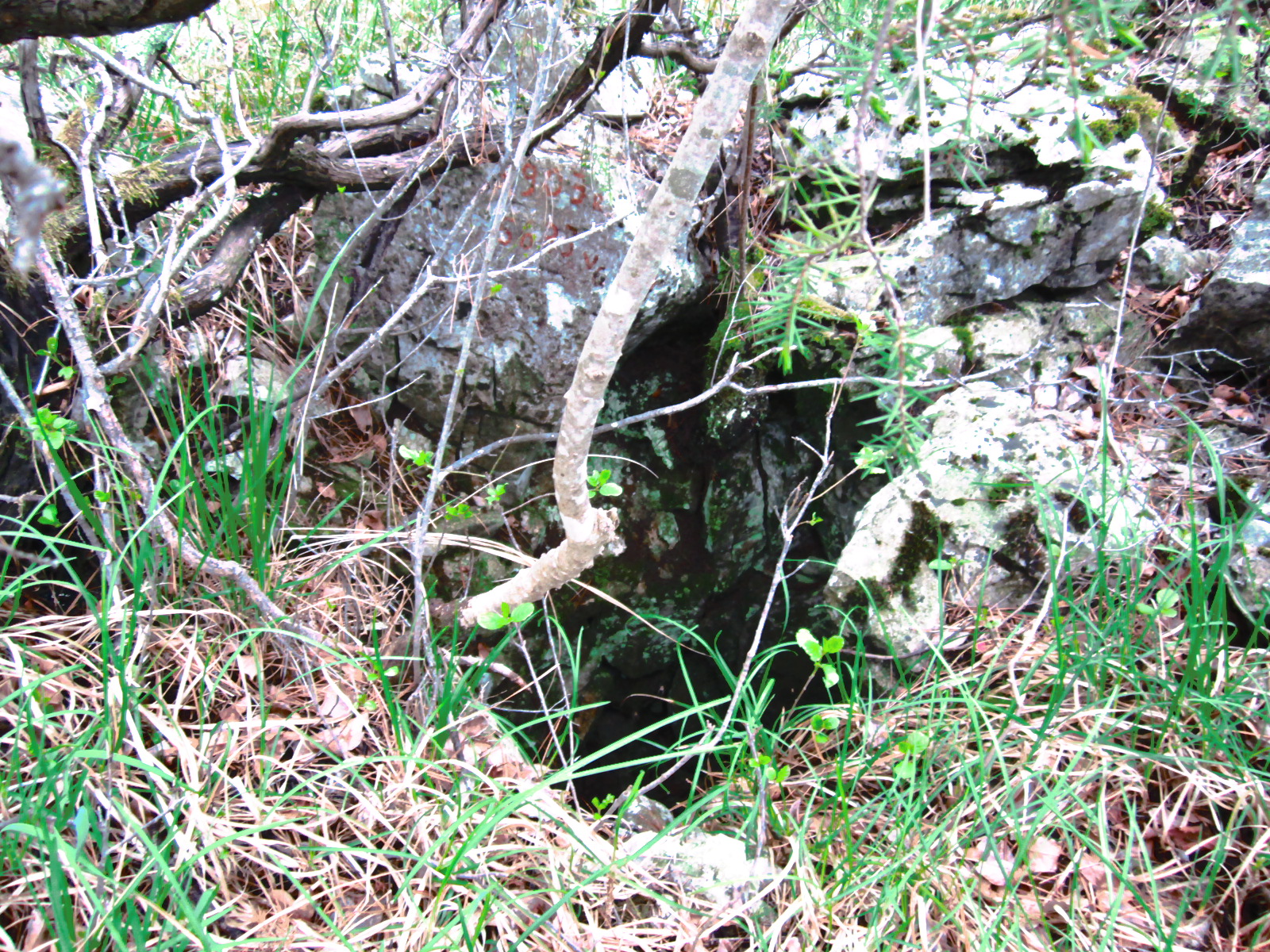 La cavità si compone di un pozzetto ed un vano sottostante che si sviluppa parte verso E (concrezionato) e parte verso W (eroso).