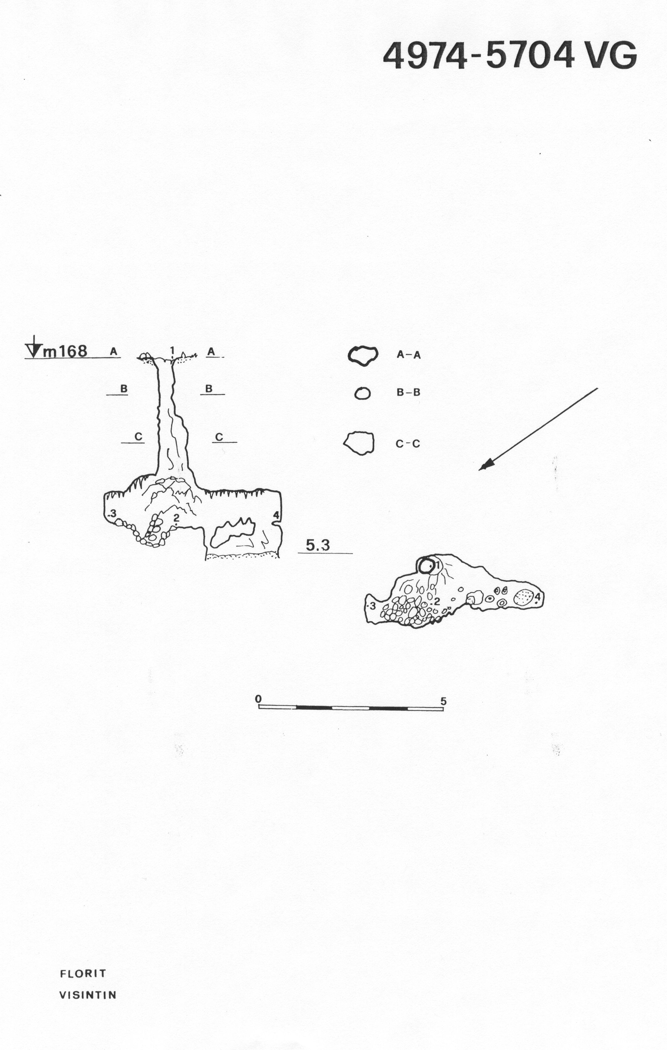 La cavità è costituita da un pozzetto di 5,3m che termina in una piccola caverna ben concrezionata.