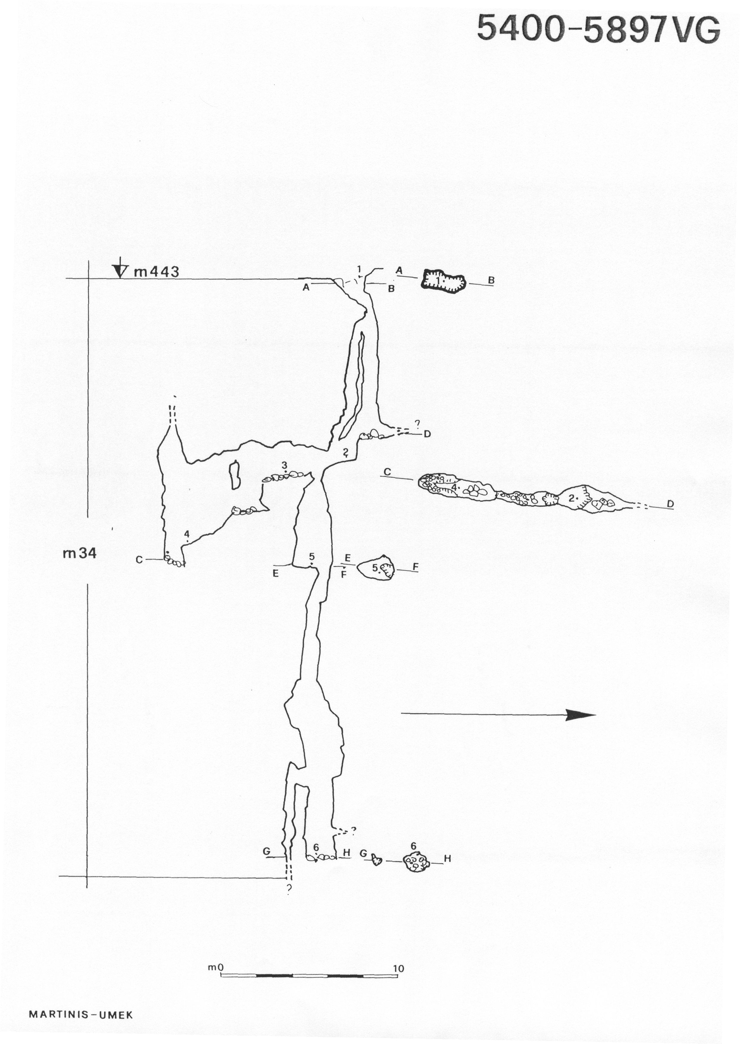 Superata la strettoia iniziale e sceso il primo pozzetto, si arriva in una stanzetta impostata su una frattura, con il fondo in discesa: qui si apre l'imbocco del pozzo successivo, stretto e malagevole, che porta alla massima profondità.