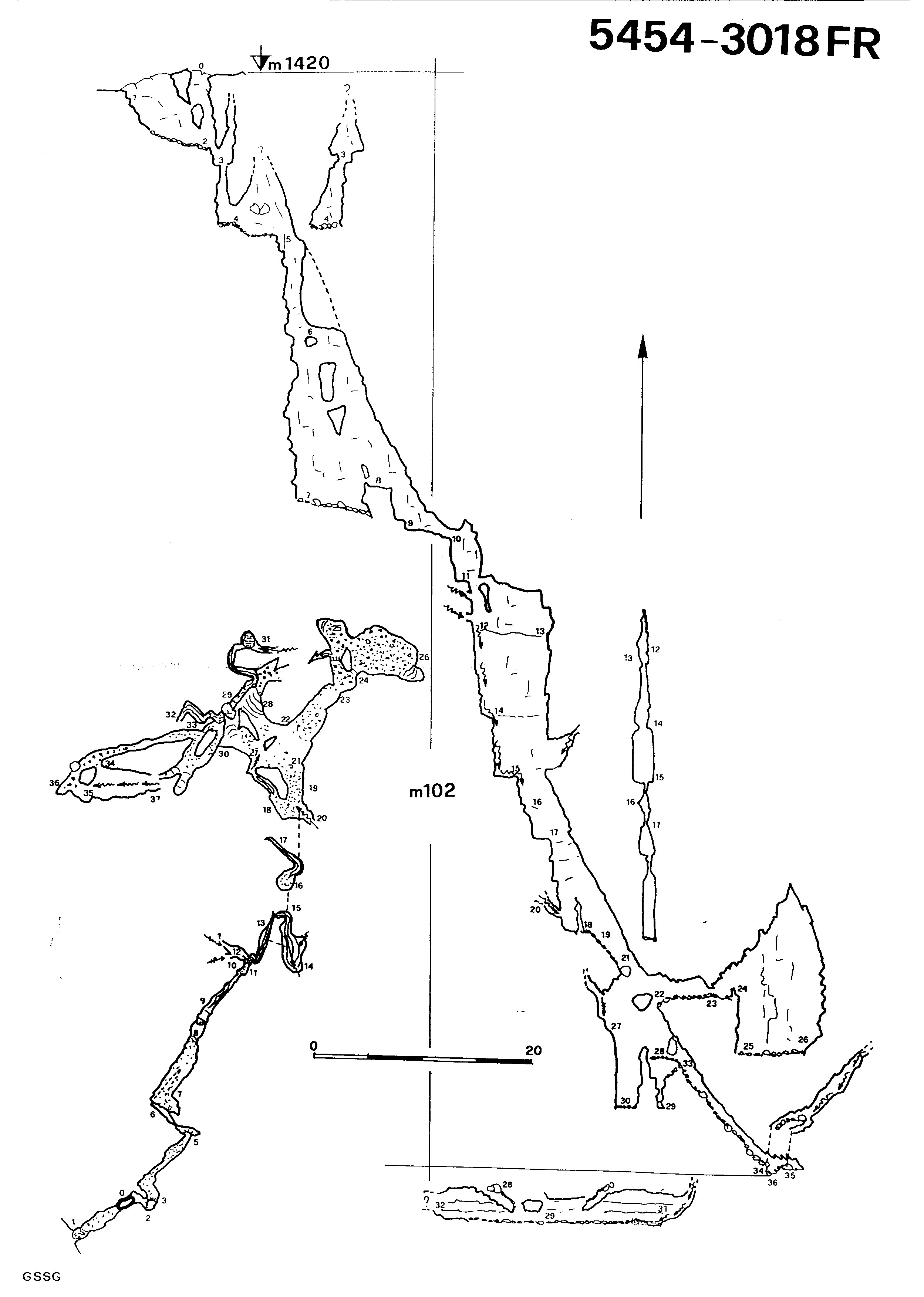 La roccia nei punti 7-8, 21-26, 27-30 è fortemente suddivisa e si verificano distacchi e crolli di materiale lapideo che va ad ostruire i meandri sottostanti.