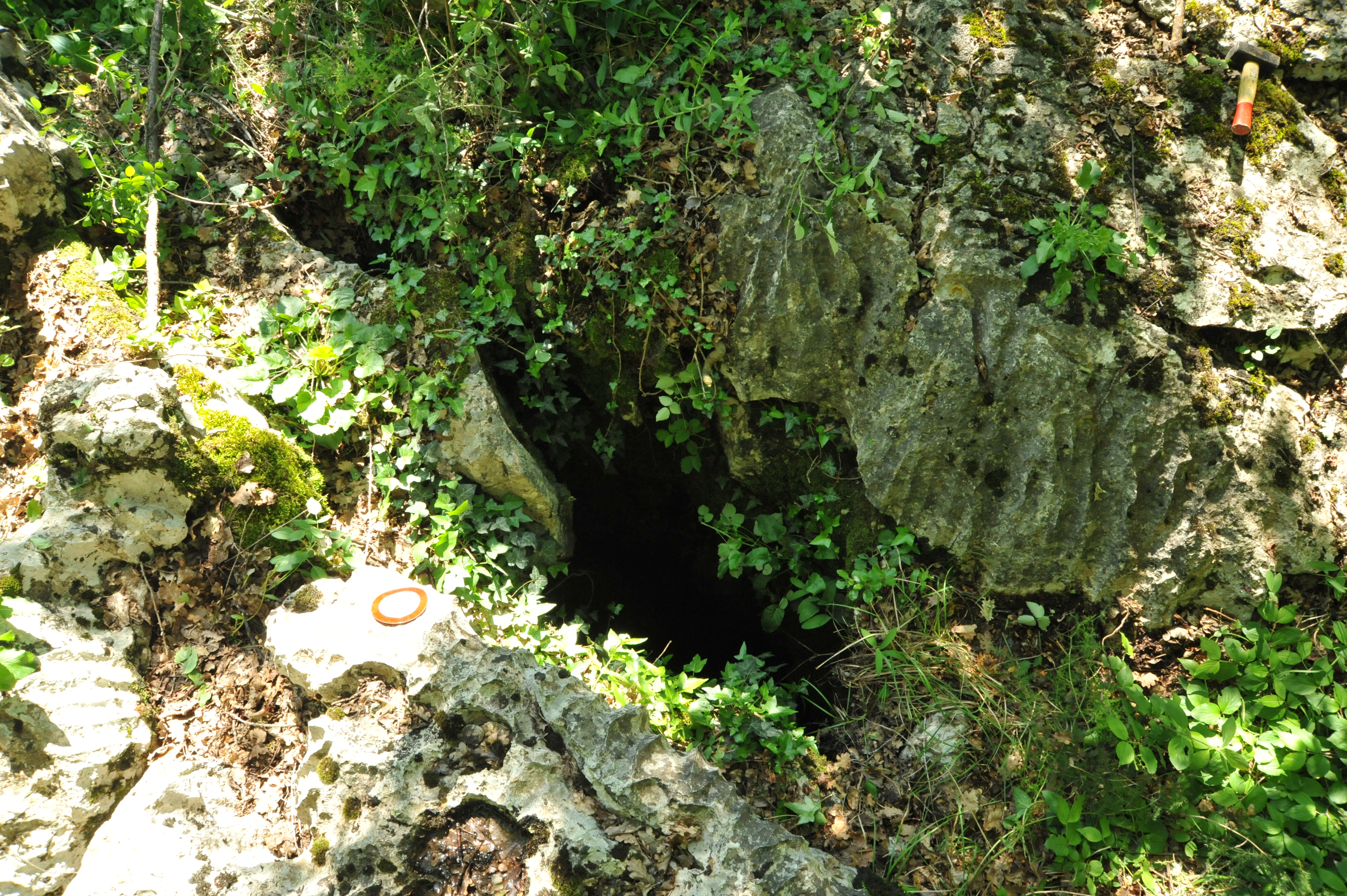 L'imbocco si apre in mezzo ad un campo carreggiato a SSE della Stazione di Prosecco, in una zona pianeggiante e ricoperta da folta vegetazione di latifoglie. Il sentiero che conduce alla cavità, è quello che parte sulla sinistra della strada che dal Centro Sportivo di Prosecco porta a Borgo Grotta Gigante.