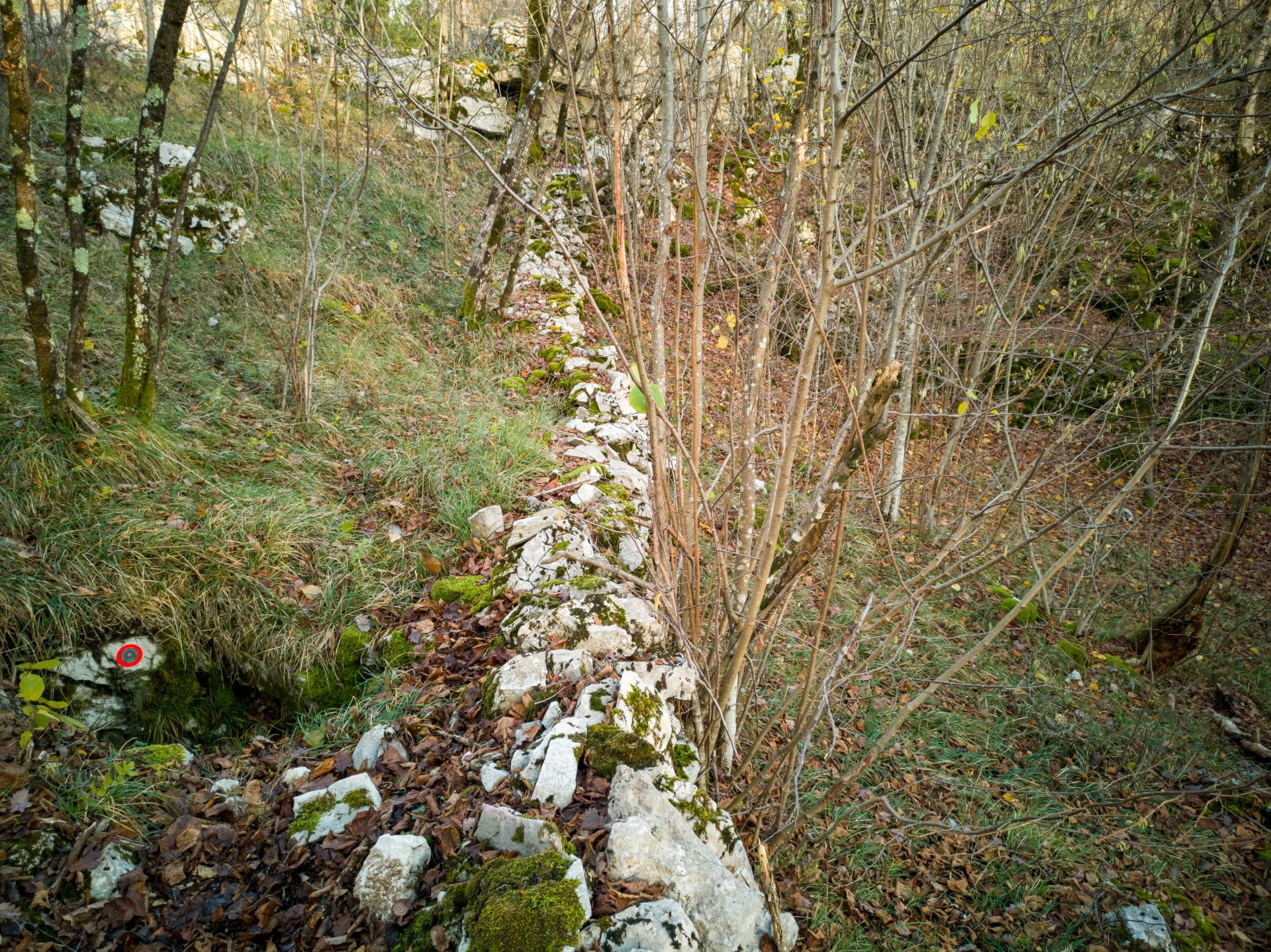 Partendo da Gropada, si segue la strada per il confine fino ad una carrareccia sul lato destro, a circa 100m dal valico. Dopo averla percorsa per 100m, si piega decisamente a Sud per circa 70m, fino ad incontrare una piccola dolina, indicata anche sulla CTR.