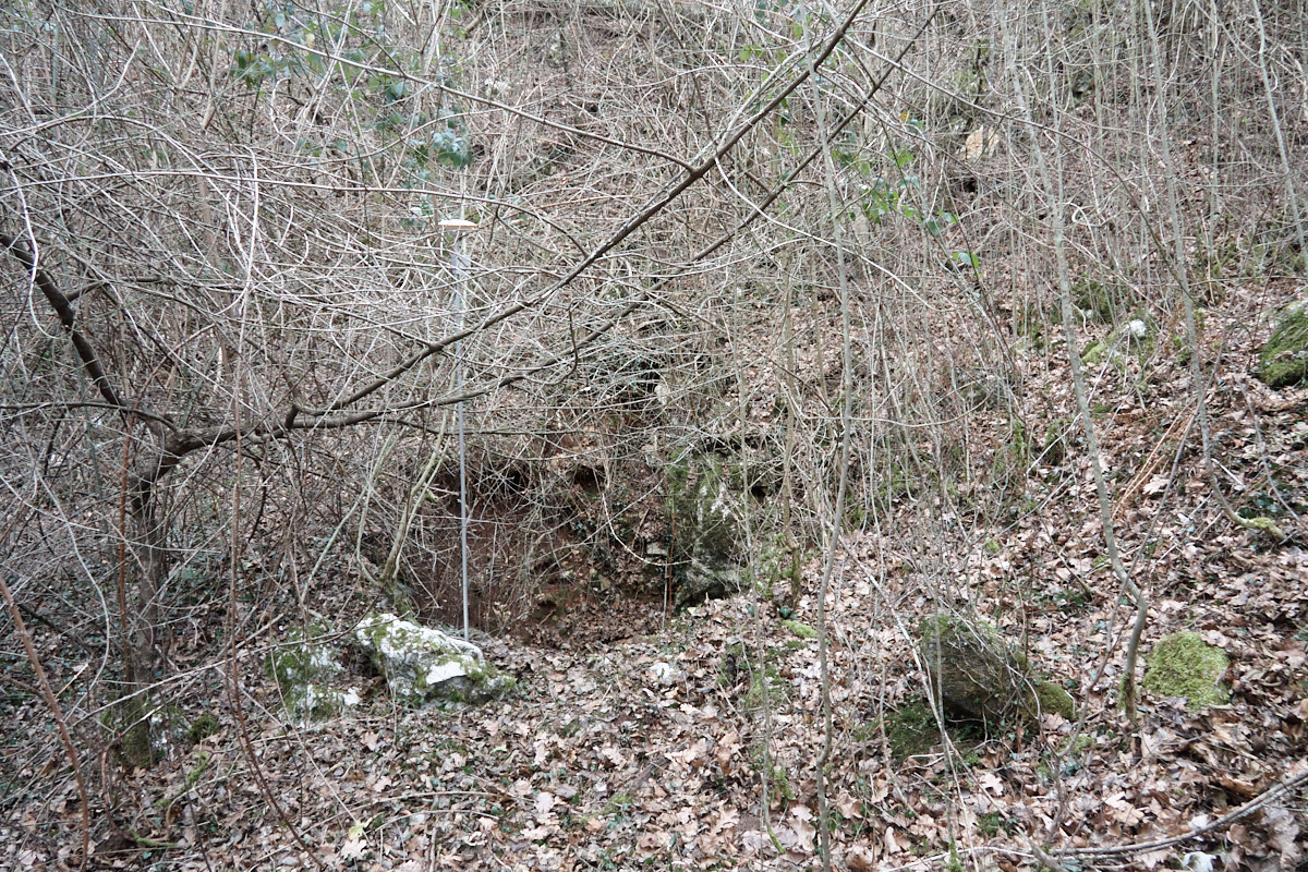 Note per Stato ingresso: Confrontando la situazione attuale al primo rilievo e la conformazione dell'entrata nel terreno terroso, dall'ingresso sembra essere franato un po' di materiale/terra verso la strettoia sul pozzo d'entrata, probabilmente pregiudicando la possibilità di discendere il pozzo. Per via del terreno instabile non è stata verificata l'effettiva possibilità di entrare senza effettuare disostruzioni.