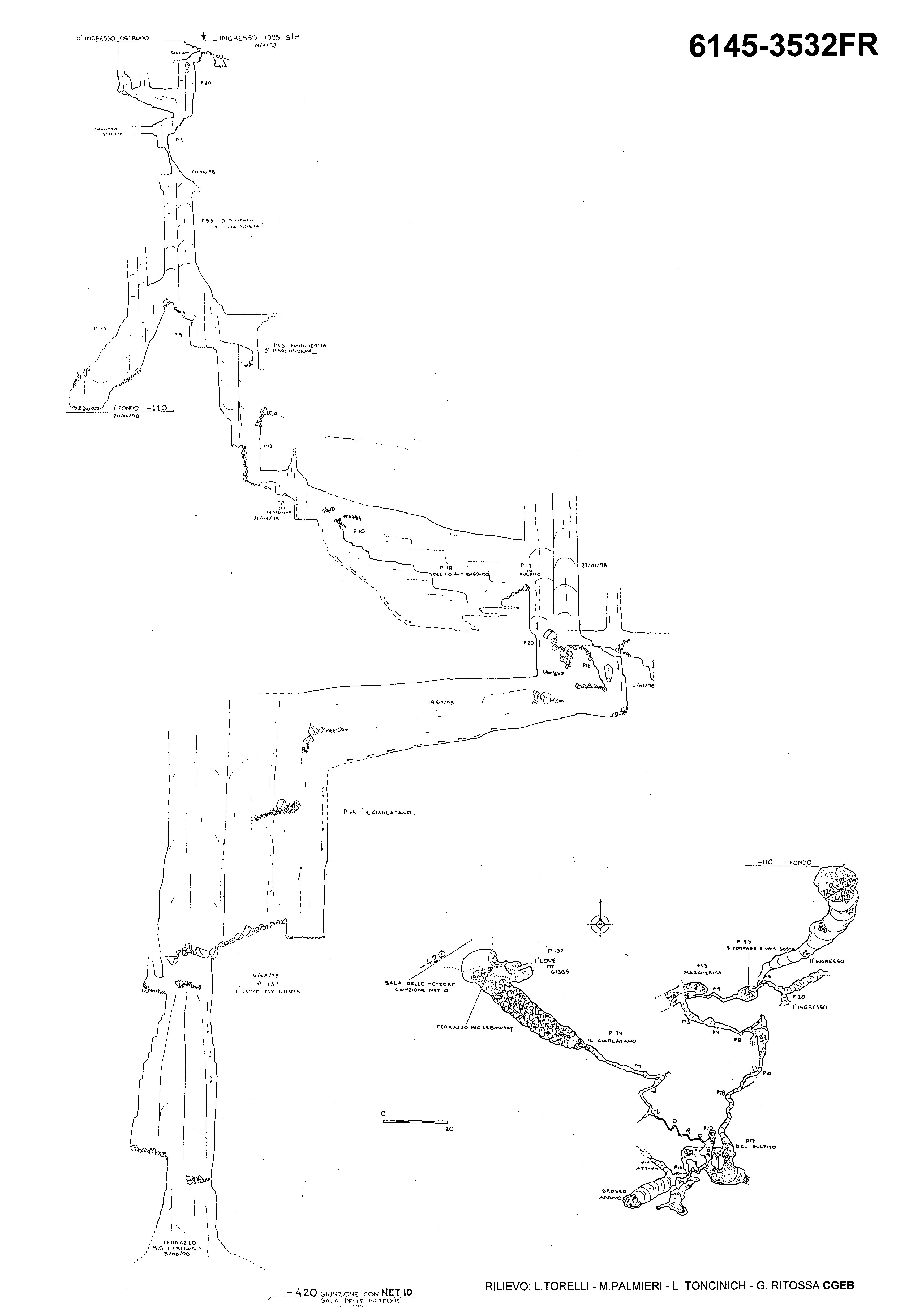 La georeferenziazione della planimetria della cavità è comunque da intendersi indicativa, per l'accuratezza far riferimento alla scheda rilieviData planimetria: 03/08/1998