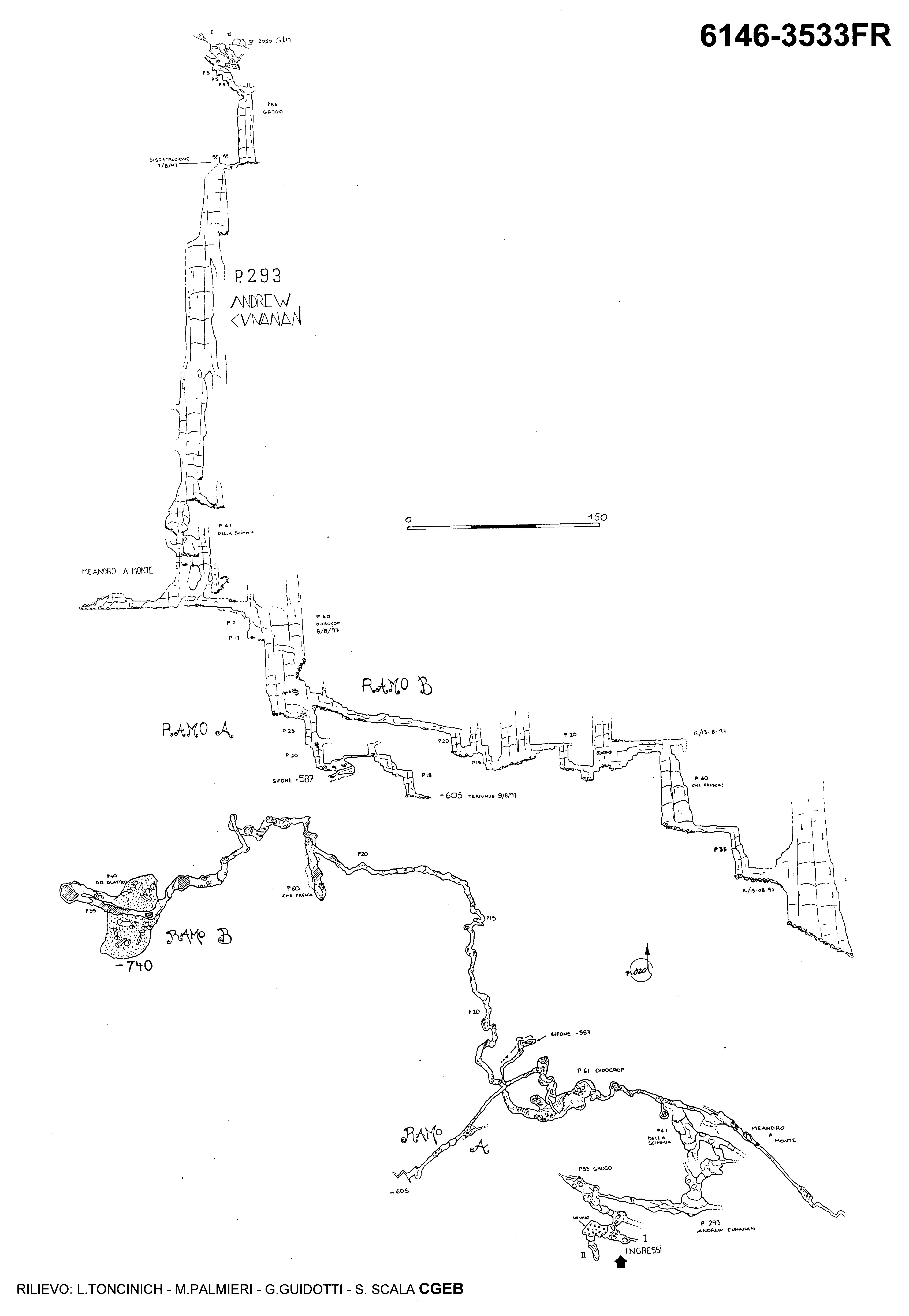 La georeferenziazione della planimetria della cavità è comunque da intendersi indicativa, per l'accuratezza far riferimento alla scheda rilieviData planimetria: 31/08/1998