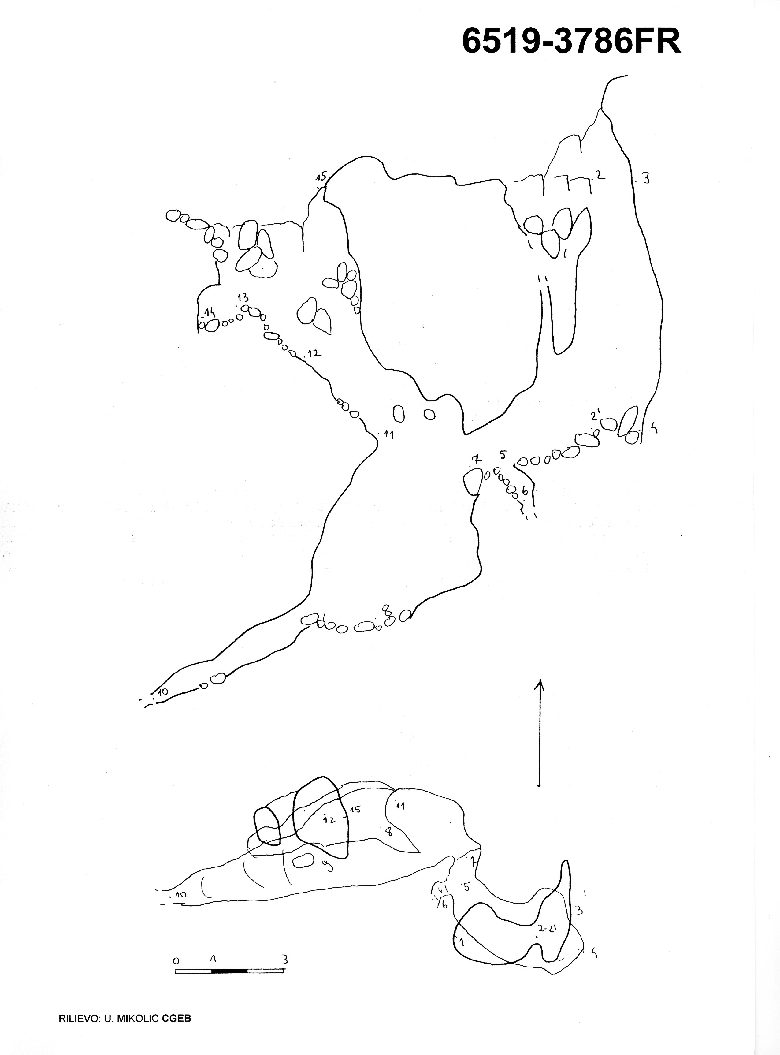 La cavità si apre con due ingressi distinti sul pianoro che si estende subito ad Est della 6516/3783FR (" Le Pozze 2").