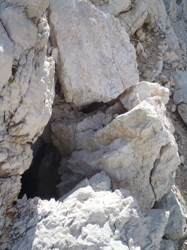La grotta si apre sulle pareti ad est del ghiacciaio in direzione sella Ursich.