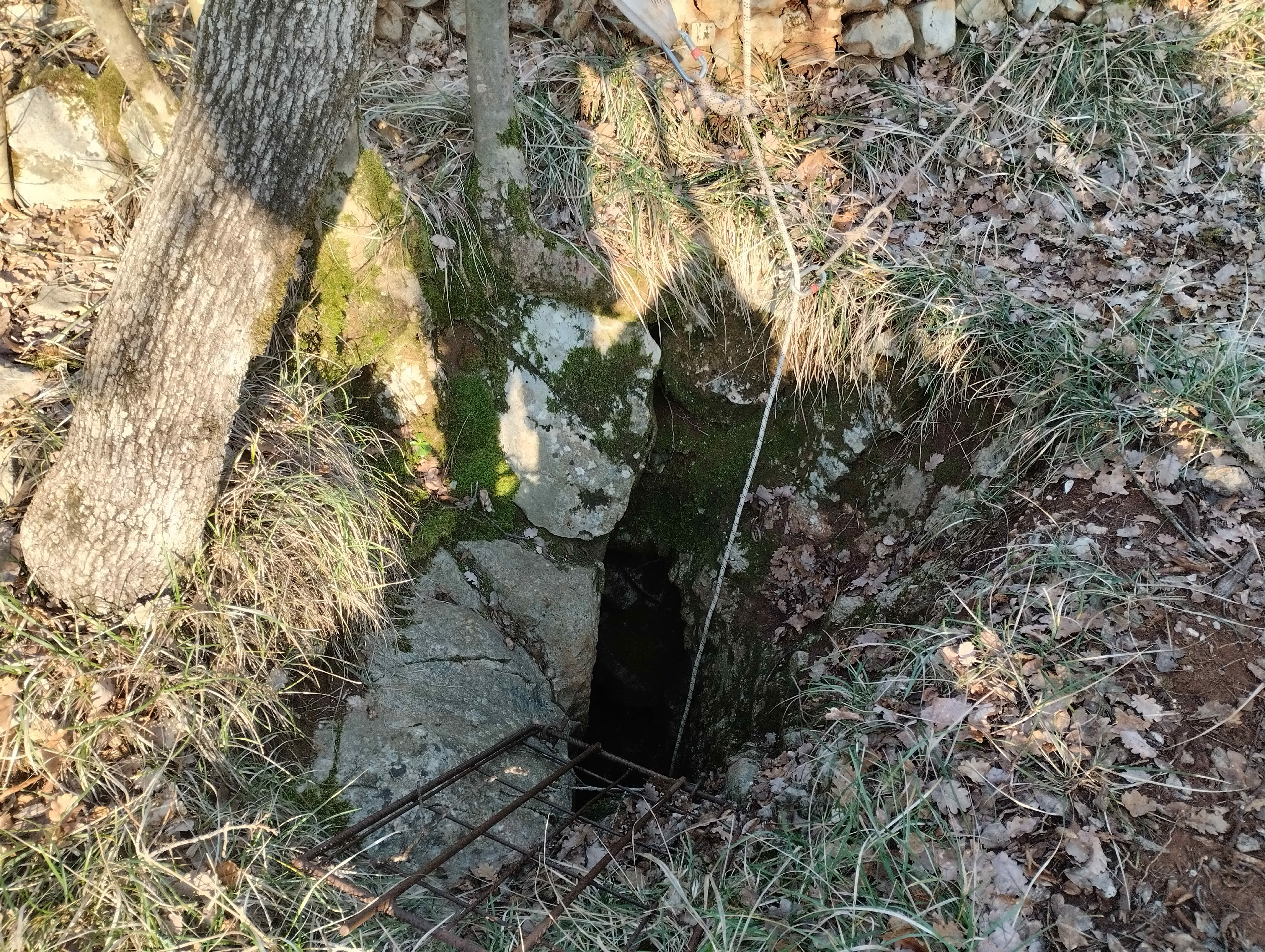 Gli scavi necessari a liberare il pozzo sono stati intrapresi grazie alla gentile concessione di Fabio e Barbara Franceschini, proprietari del fondo. L'ingresso presenta una grata di protezione (senza lucchetto). Due tronchi sul bordo del pozzo consentono un'agevole armo. Il pozzo scende per 4 metri con sezione costante (circa 1.5 x 2m) per poi allargarsi in una saletta concrezionata dal fondo piatto fangoso. Da qui la cavità prosegue con due brevi tratti verticali: il primo, agibile, di circa 2m termina su un'occlusione di fango. Il secondo è una fessura orientata a NE (non transitabile al 04/02/2023) che lascia intuire una possibile prosecuzione.