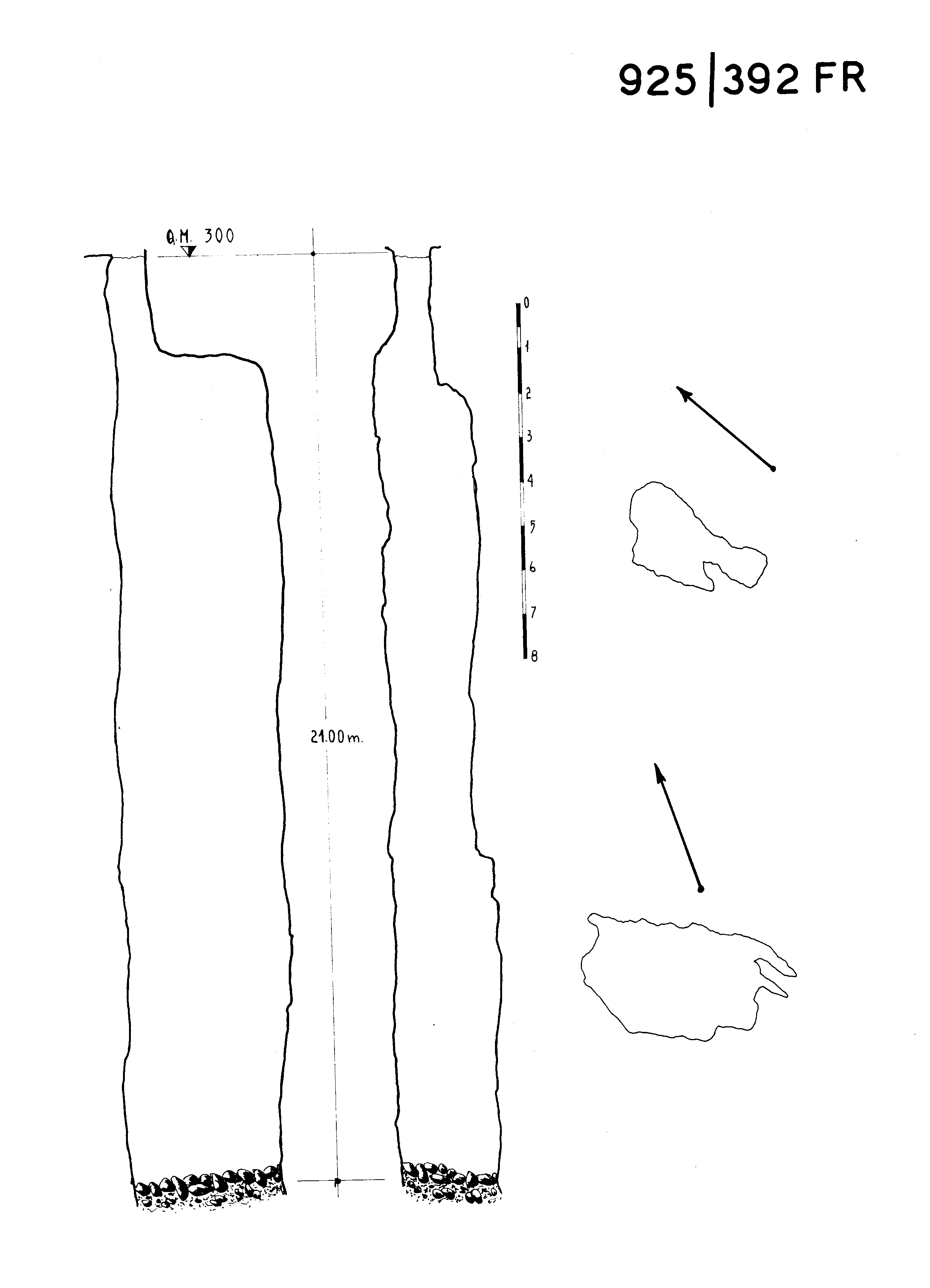 Anche in questa cavità, come già nell'Antro Piccolo (924/391FR), l'orientazione dell'asse maggiore della sezione orizzontale è NS; il pozzo dapprima stretto, si allarga dopo qualche metro per mantenere poi una sezione costante fino al fondo, costituito da fango misto a detrito, ed è usato come scarico delle acque meteoriche che si raccolgono sulla strada.